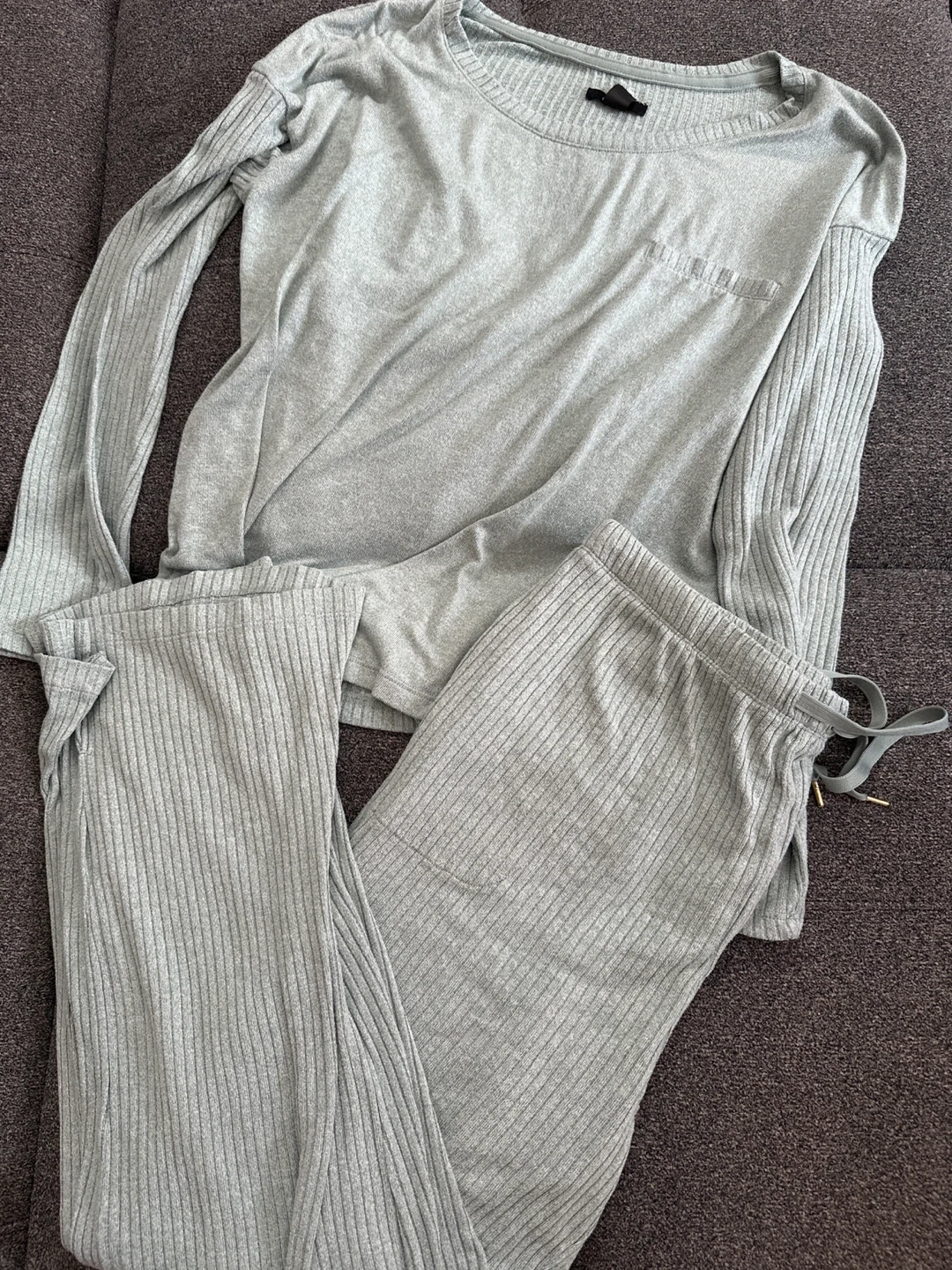 Cozy up in this cute Midnight ribbed lounge set! It's a comfy grey colour and a size medium. Perfect for relaxing at home or a casual day out