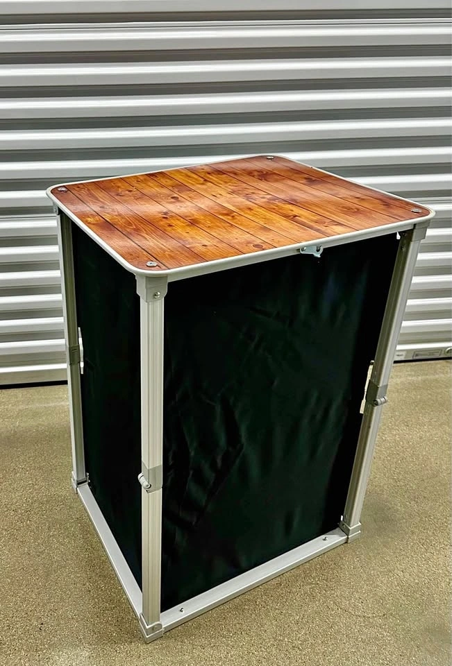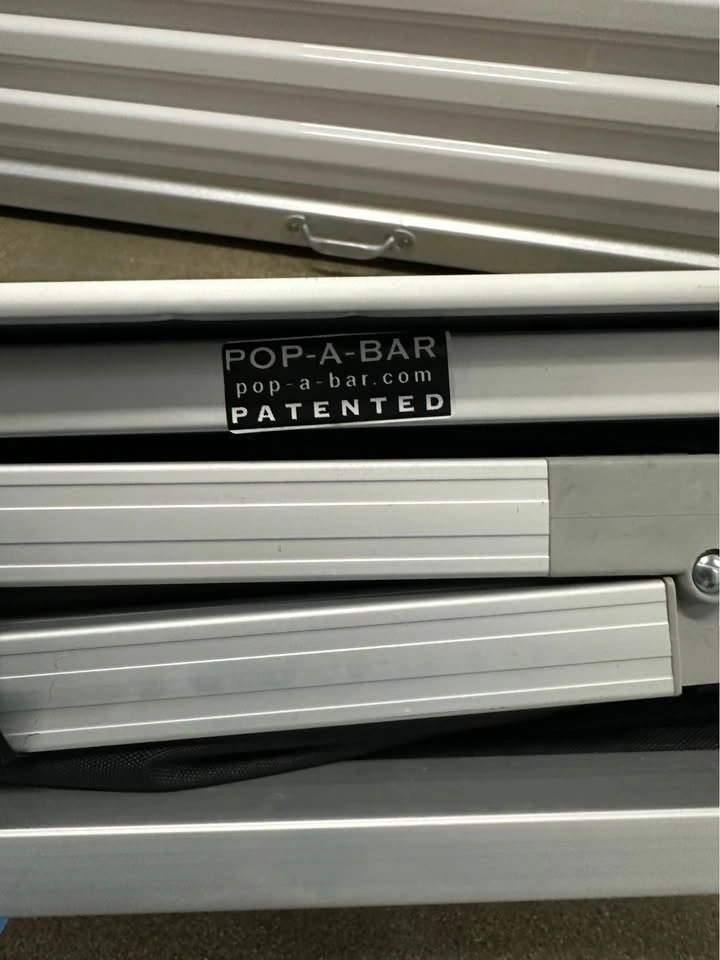 Portable Pop-A-Bar folding bar table in excellent condition. Super easy to set up and fold away. Great for parties, events, or even home use. Folds compact for storage. Includes carrying bag. Wheels included (not installed). Lightweight but sturdy. Clean, no issues. Just open and use — no assembly needed. Pickup in Buffalo Grove.