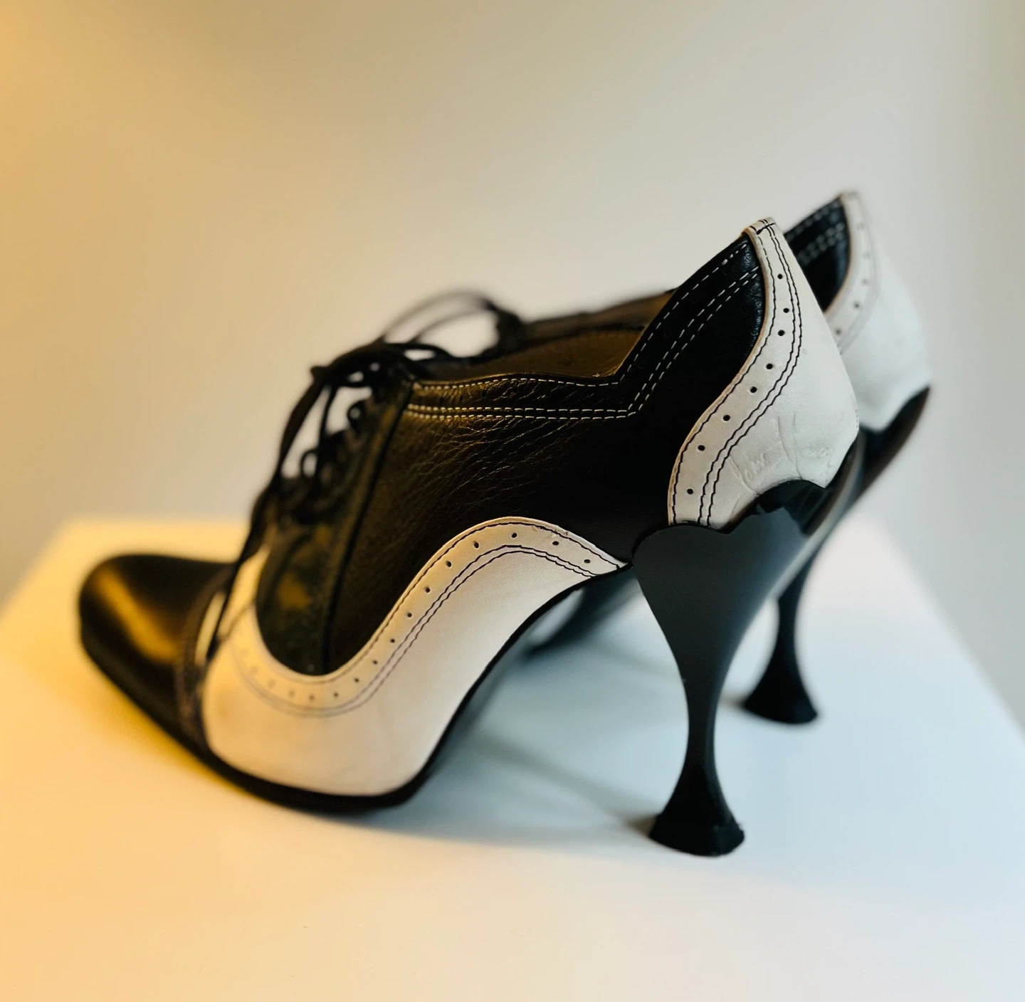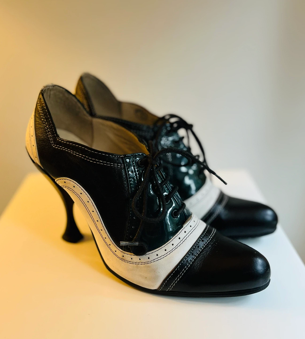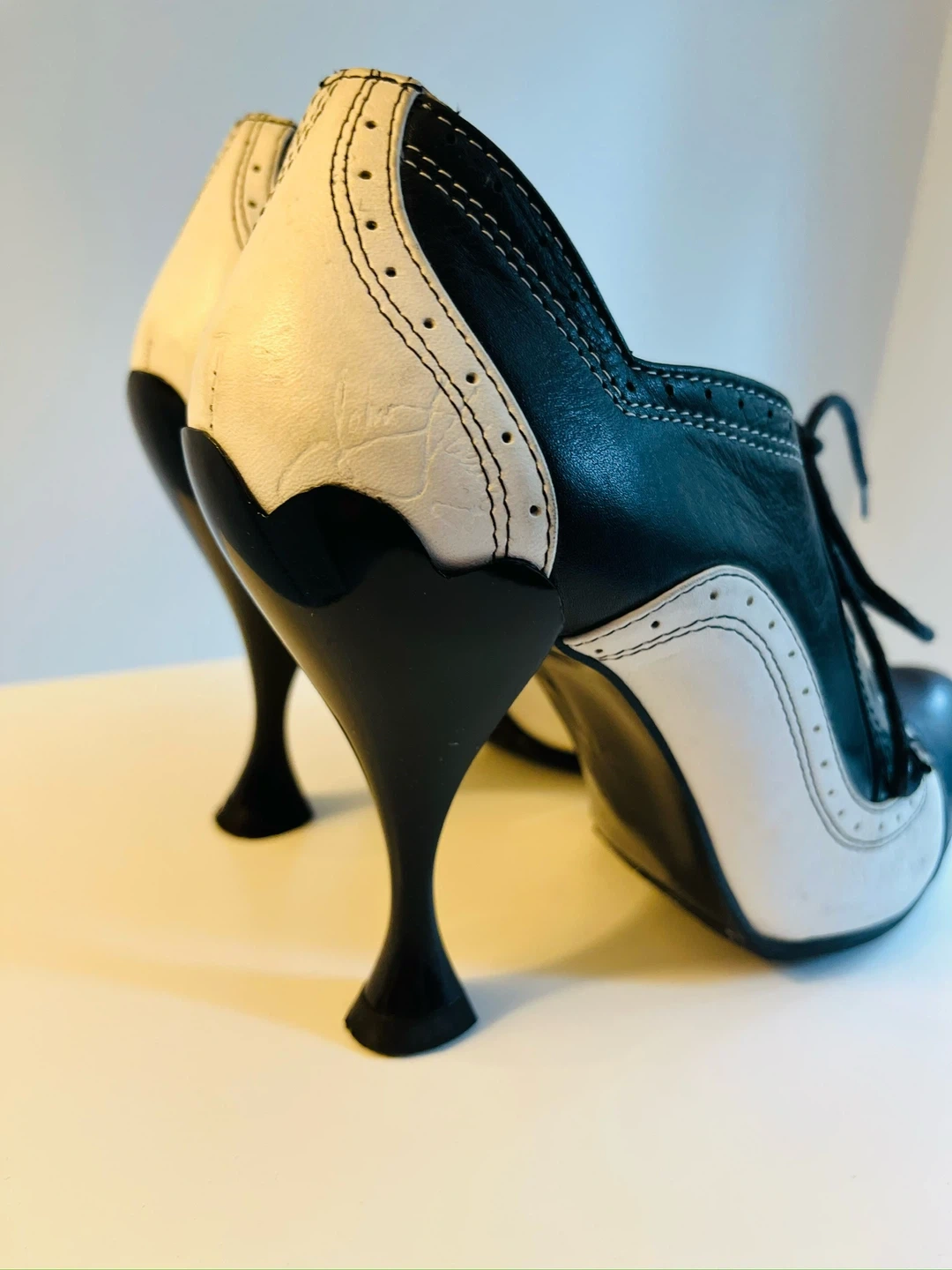 John Fluevog Vintage Black & White Wingtip Heels Size 8