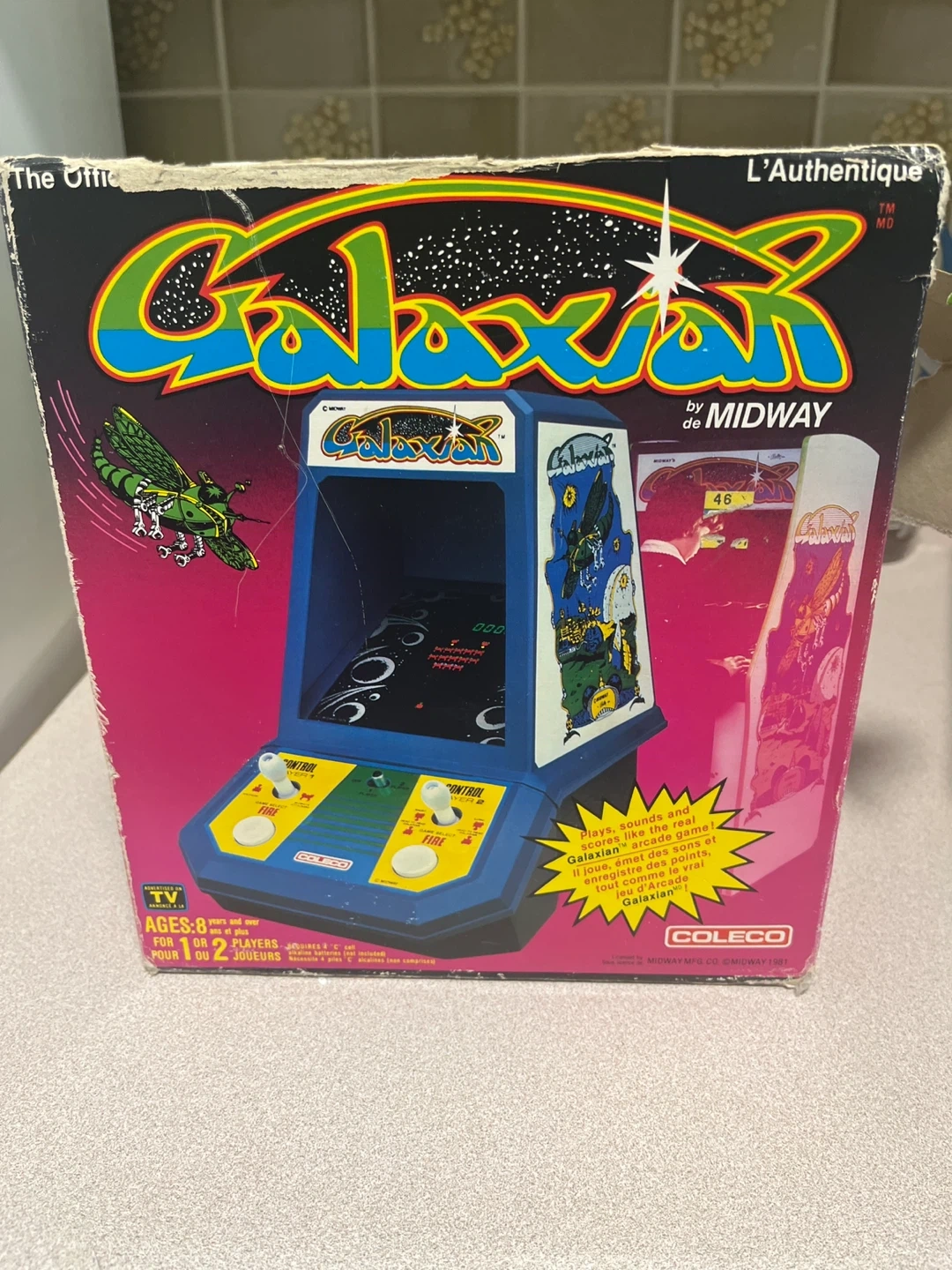 This is a Coleco Galaxian electronic handheld game. It plays, sounds and scores like the real Galaxian arcade game. It's for ages 8 and over.