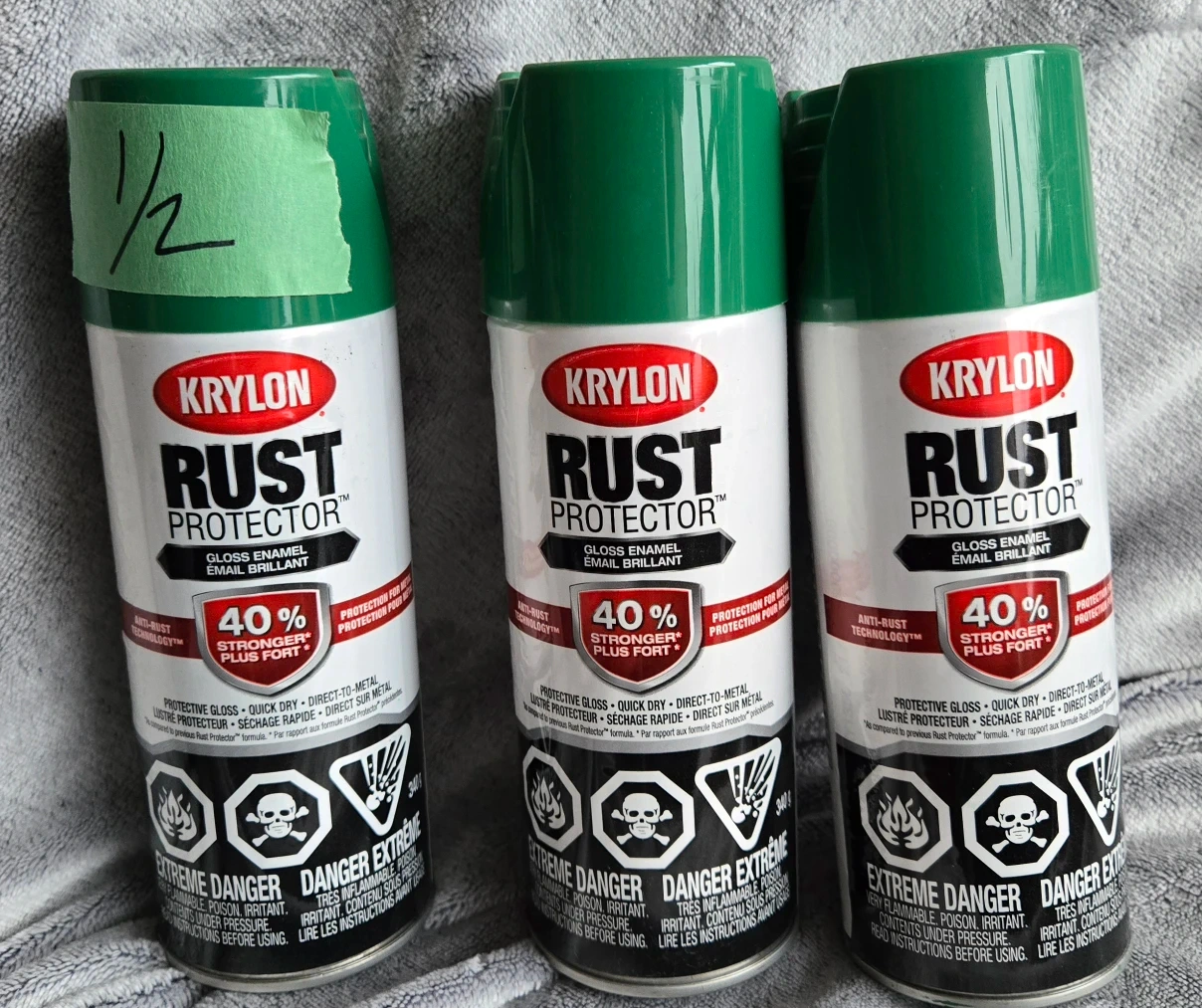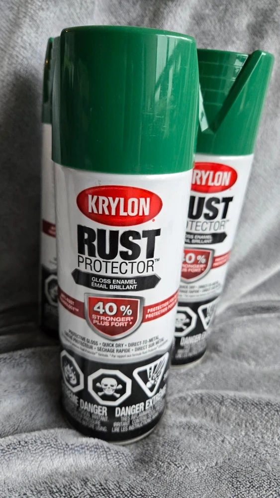 Green Krylon Rust Protector gloss enamel spray paint.