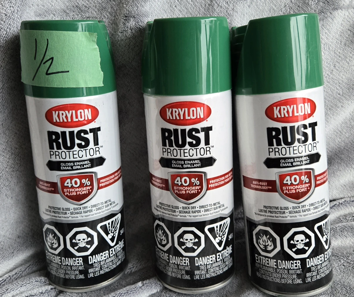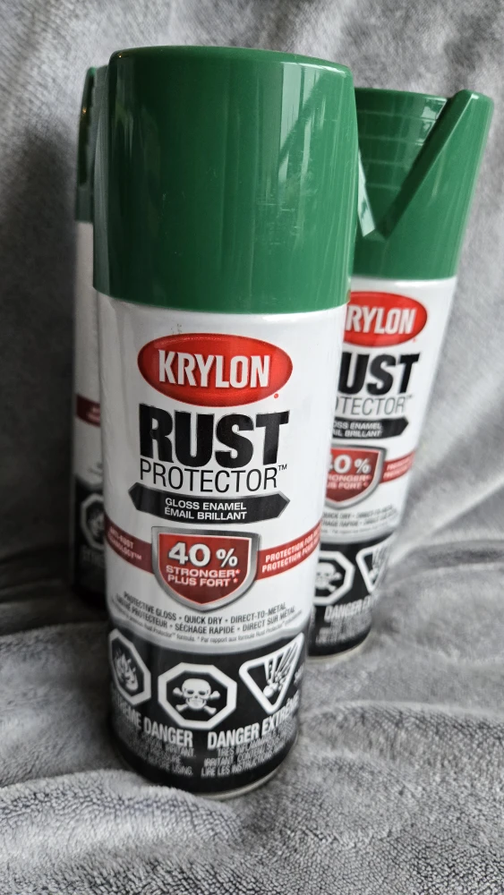 Green Krylon Rust Protector gloss enamel spray paint.