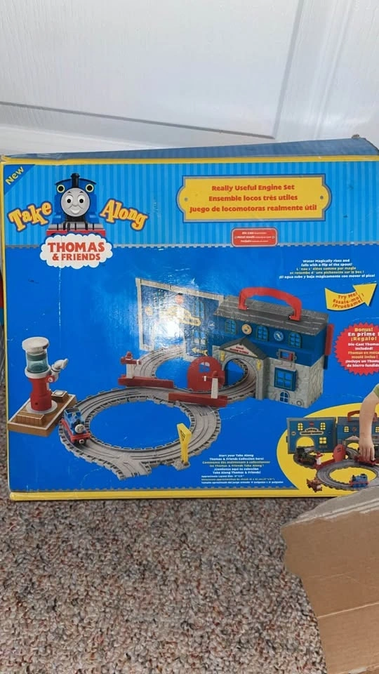 Contains all pieces. 2006 Thomas and friends take along, really useful engine set. Additional $15 if you’d like the Thomas train that comes with it.