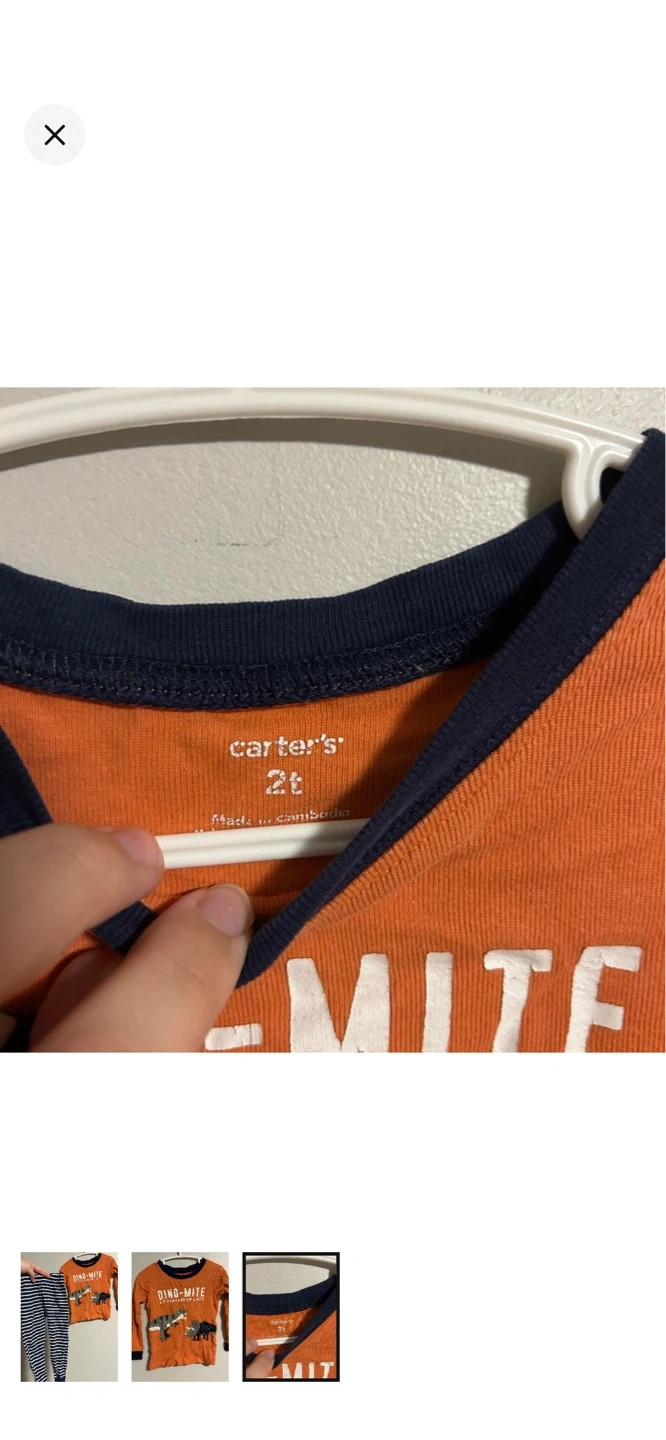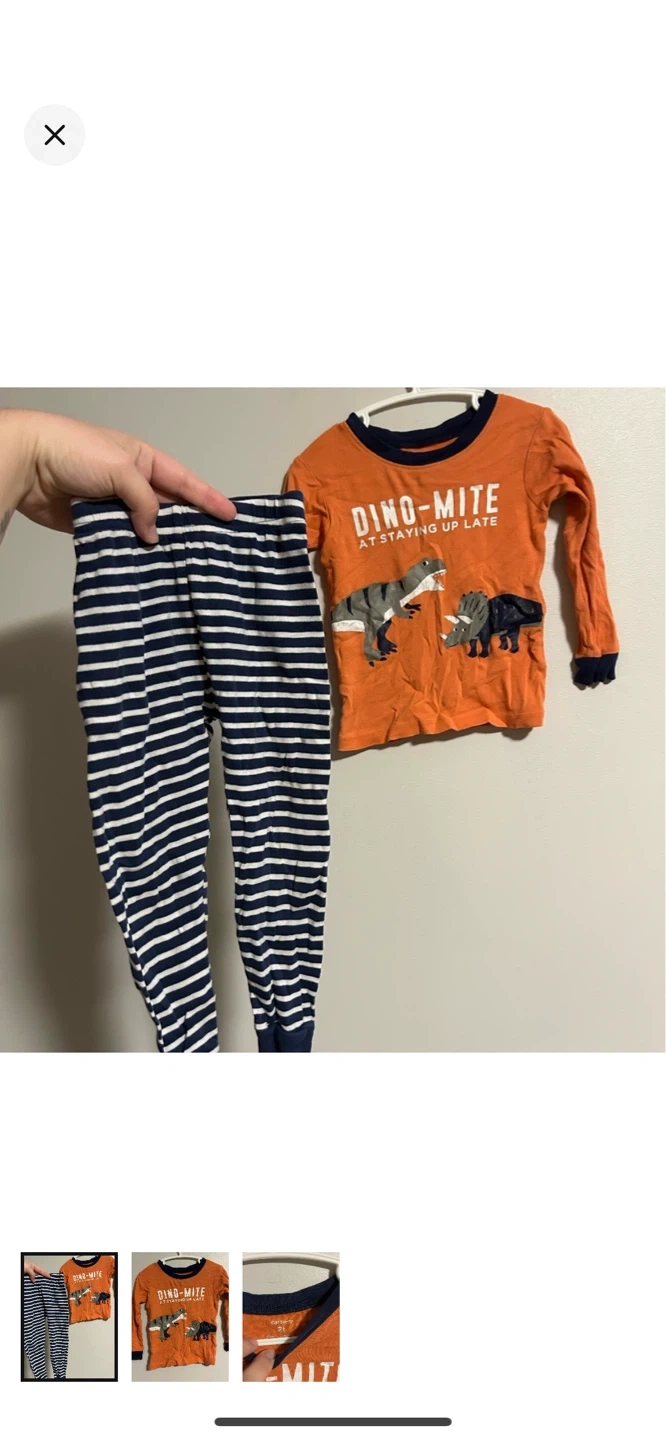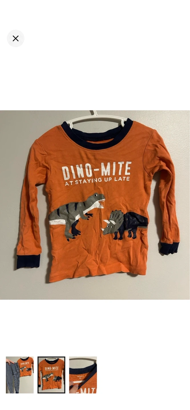 Carters brand. 2pc sleep set of long sleeve shirt and pants. Orange Dino top with navy striped pants. Size 2t. Brand new condition $8