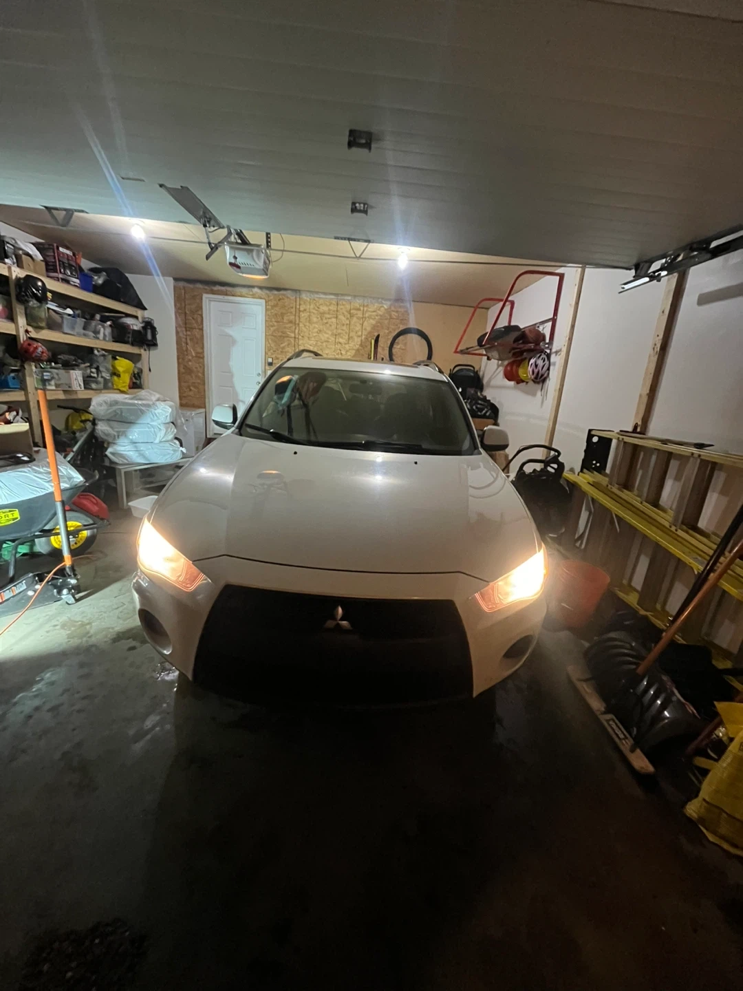 White Mitsubishi Outlander SUV. My sister had this car for the last 3 years and it’s a great car for winter. Was maintained well It's an SUV front wheel drive / four wheel drive 4 four-cylinder cad . A great option for families!
