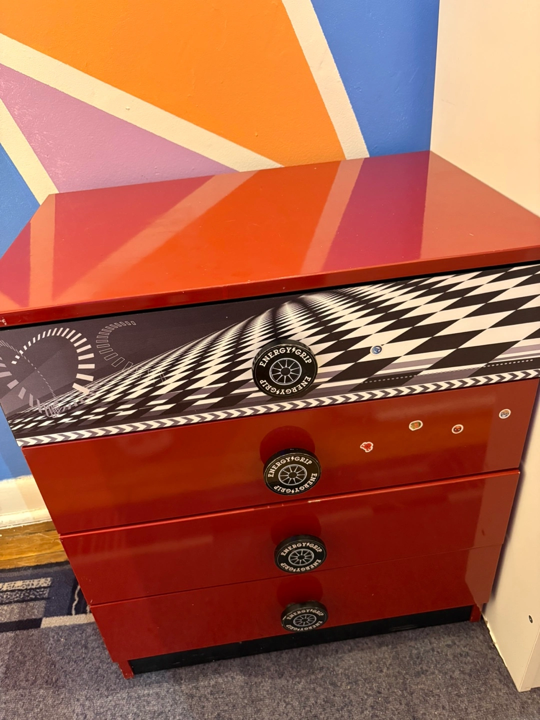 Buy & SellRed Race Car Themed four-Drawer DresserRed Race Car Themed four-Drawer Dresser$50Four-drawer dresser. Red finish. Race car theme. Graphic design on drawers. Great for a child's bedroom.ConditionGoodWHERE TO MEETCheck LocationView MapSELLERvanesszaMimico835 reviews0 chats·0 favorites