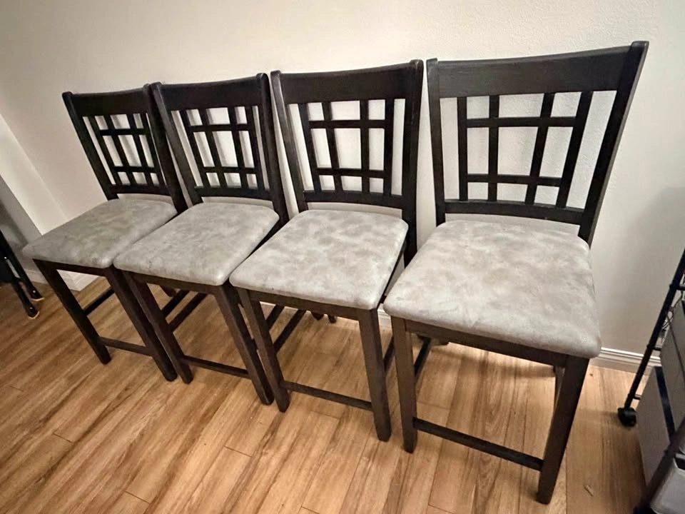 As companions to our recently sold dining table, we're now parting ways with the matching counter stools. Please note some noticeable scratches and spots on the seats that pictures 2 and 3 highlight. Picture 4 showcases the artist. Although we can't confirm the exact brand, picture 5 displays a similar product for your reference. Pickup is near Beltline Safeway.
