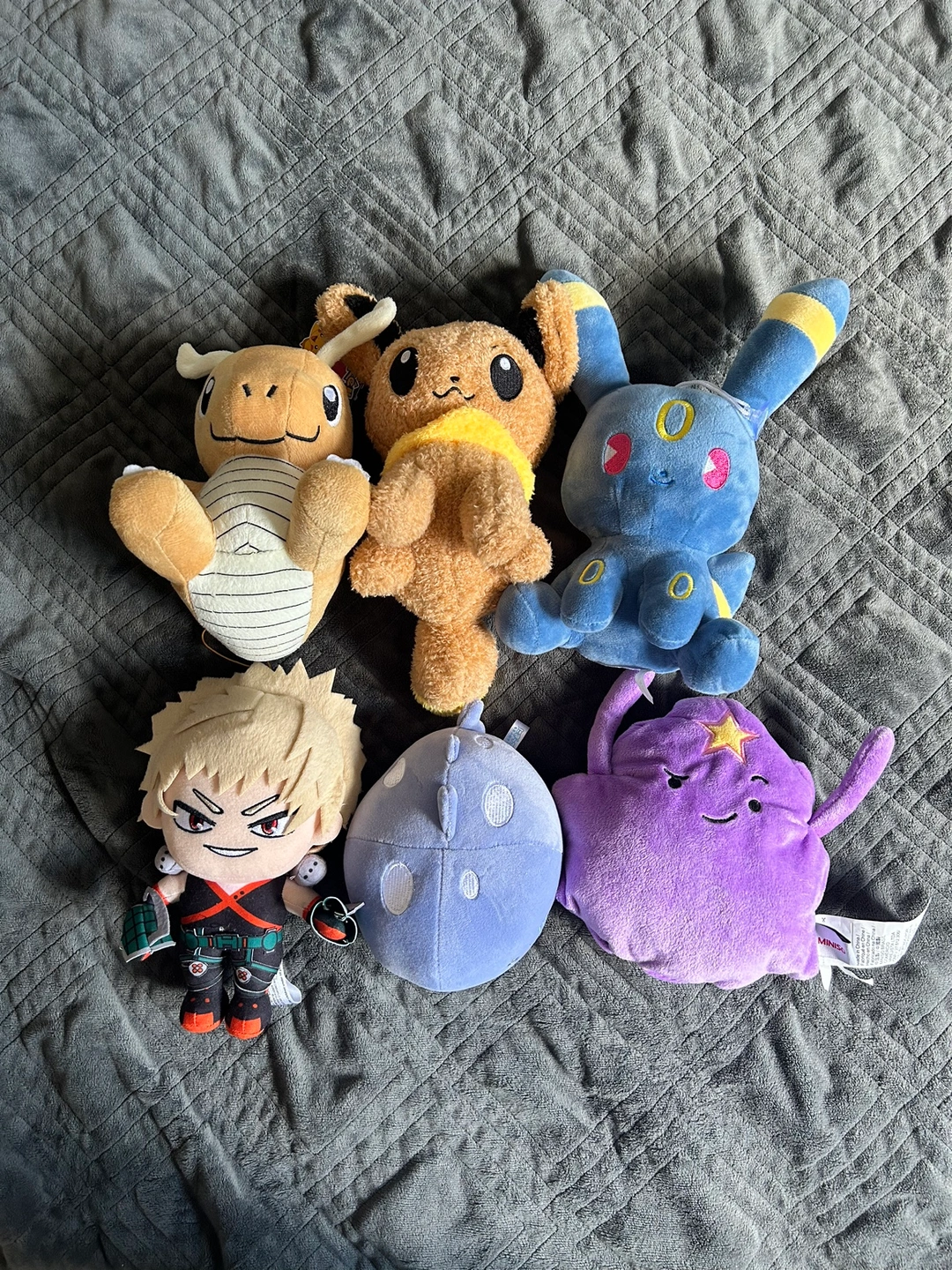 Free!! Plushies (Pokemon, Bakugo, Whale, Adventure Time)