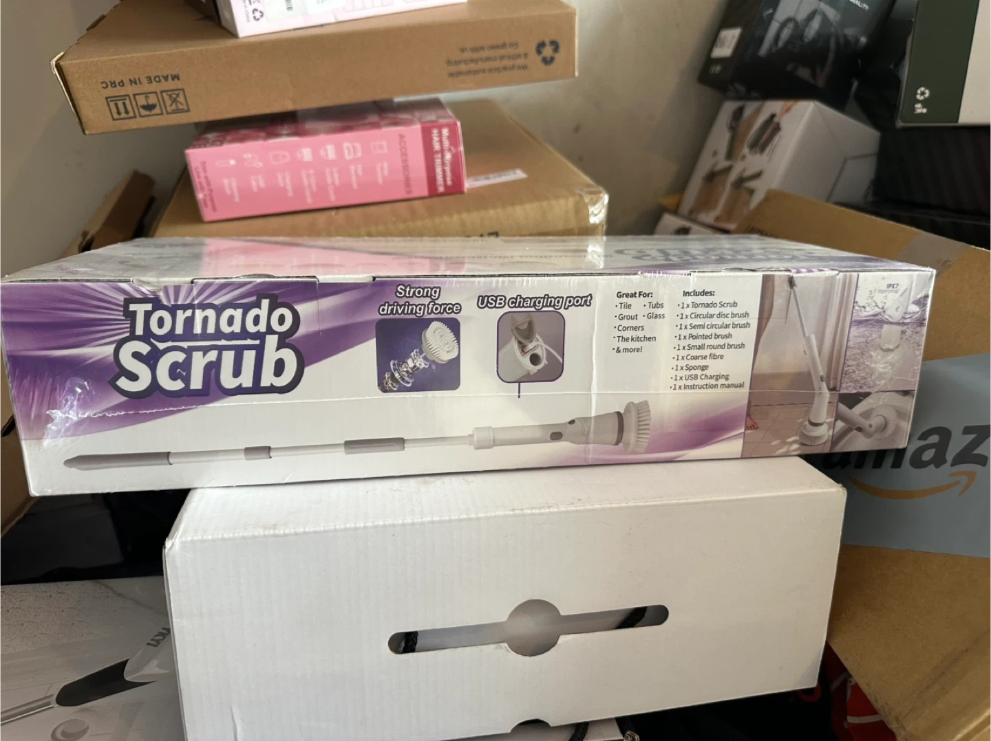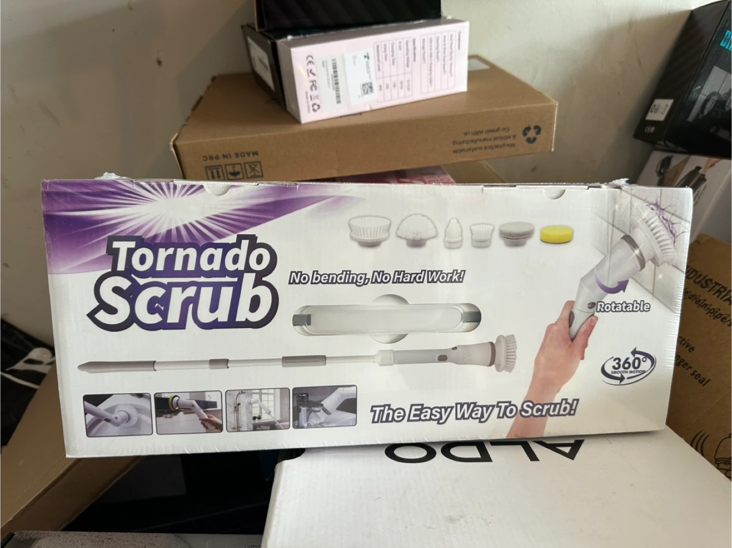 This Tornado Scrub is a cordless power scrubber designed to make cleaning easier. It extends up to 47 inches and includes multiple brush heads for different surfaces. It's USB rechargeable and perfect for indoors and outdoors!