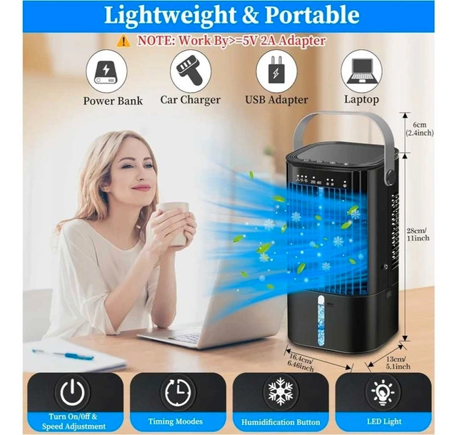Portable AC with 3 Wind Speed & Mist, Mini Cooling Fan Personal Air Conditioner with 7 Night Light & 2-4H Timer for Bedroom Office Home-Black