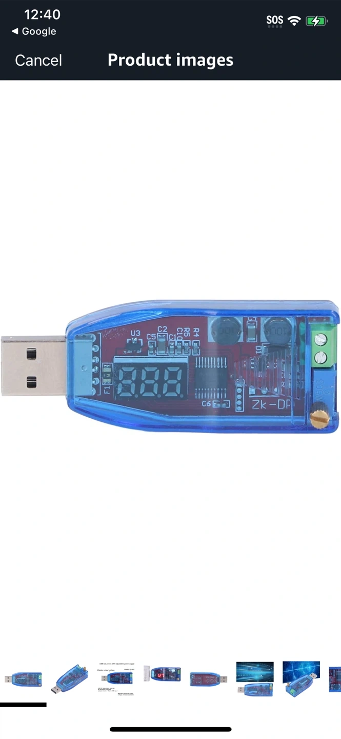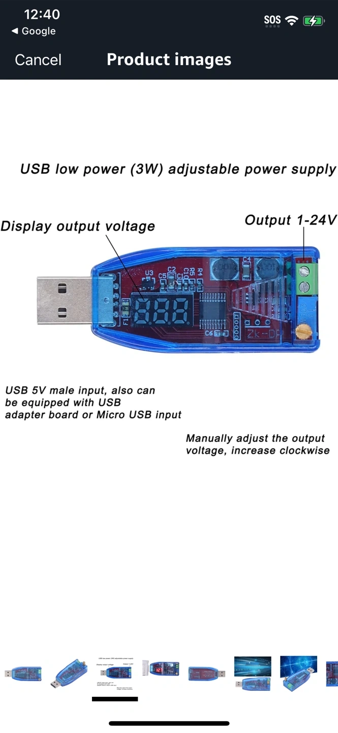 Here is a blue USB low power (3W) adjustable power supply. It features a display output voltage and an output range of 1-24V. It also has a USB 5V male input and can be equipped with a USB adapter board or Micro USB input. The output voltage can be manually adjusted by turning clockwise!