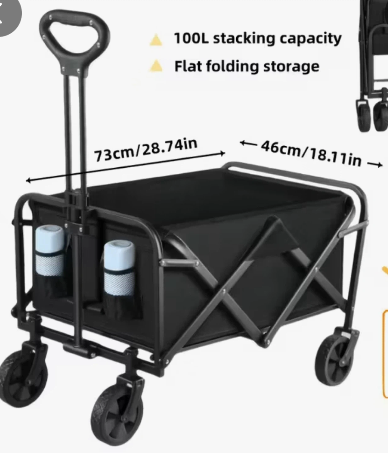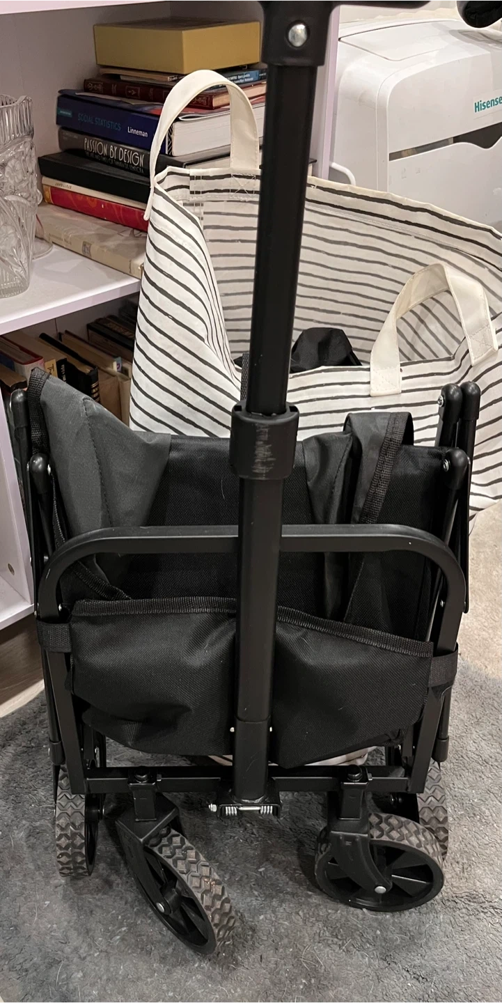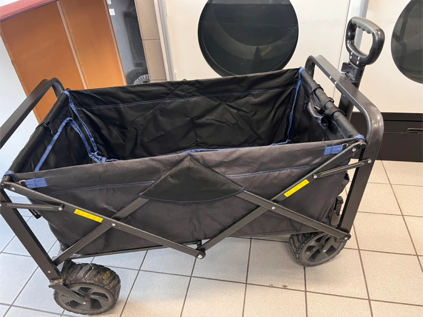 This folding wagon cart is perfect for hauling groceries, sports equipment, or anything else you need to move around! It's in very good condition like new and folds up for easy storage.