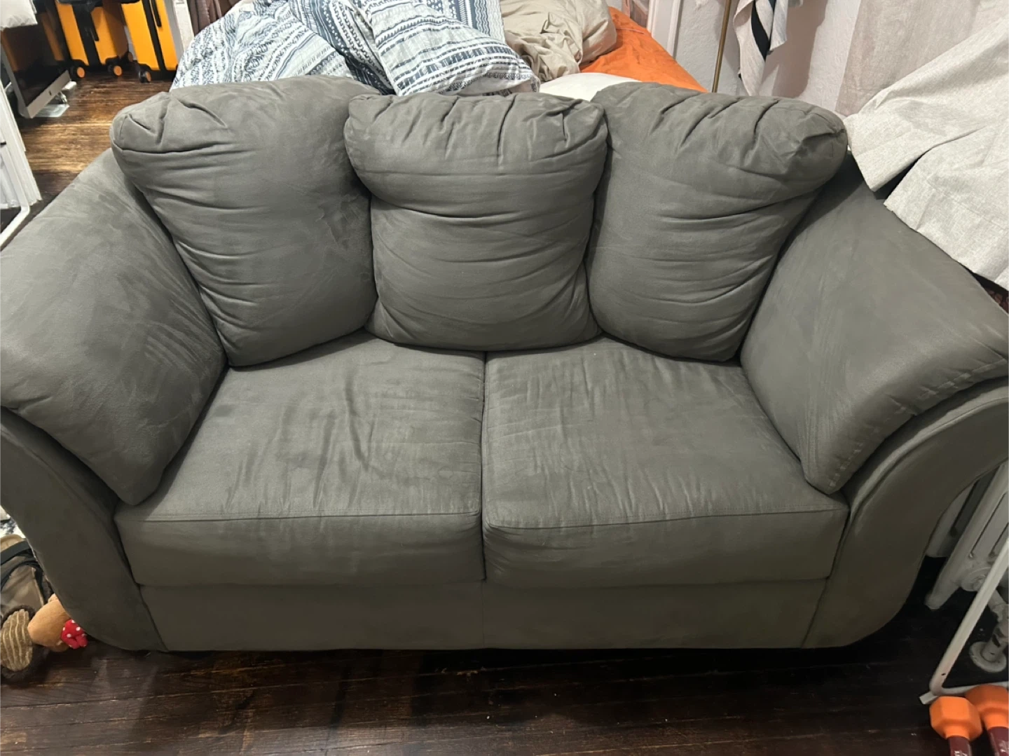 Selling a comfy grey loveseat sofa.