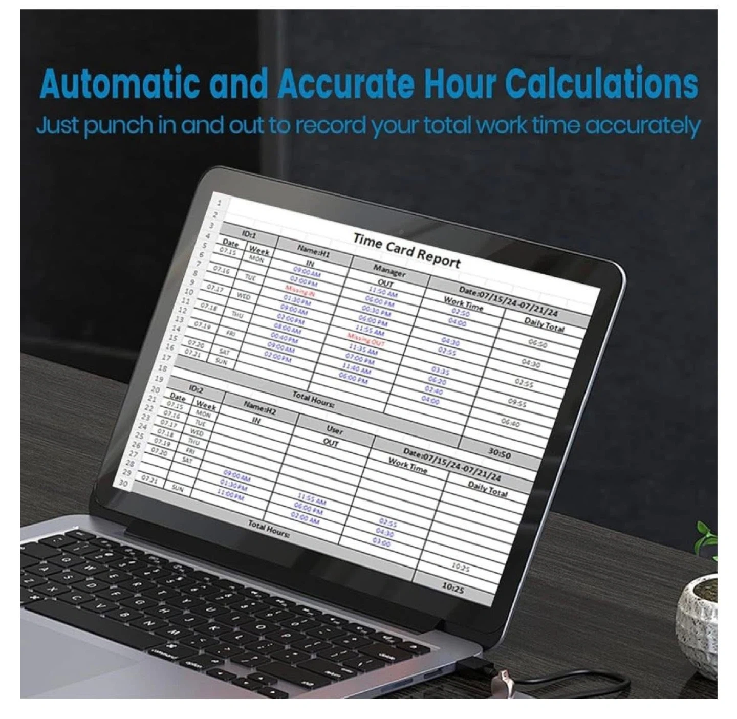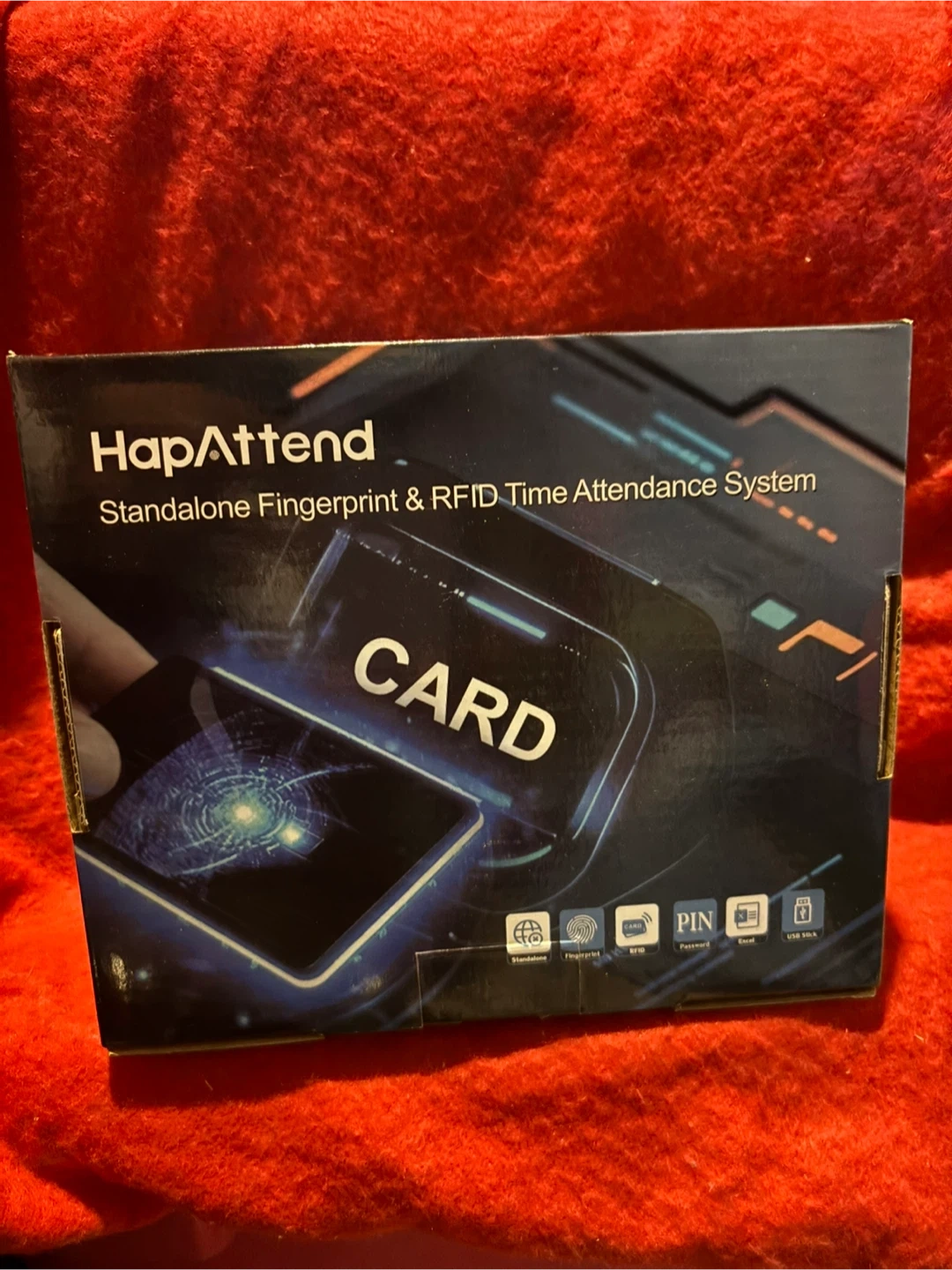 Standalone Fingerprint & RFID Time Attendance System by HapAttend. It includes 5 RFID cards and a 4GB USB drive for easy data transfer. Automatic and accurate hour calculations! This system helps track employee work hours precisely.