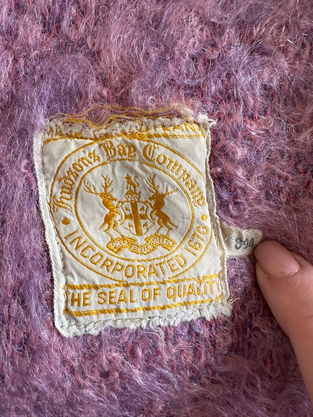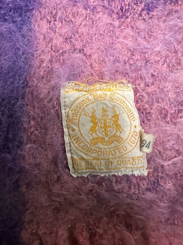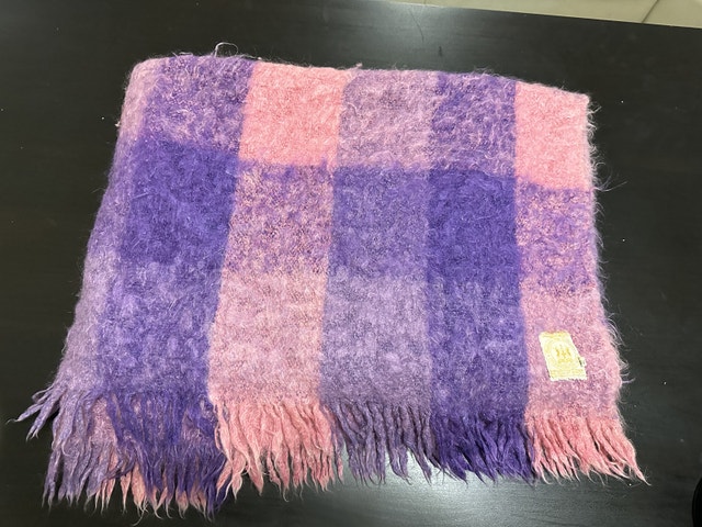 Great condition Made in Scotland 1940-1950. Recently dry cleaned. 75% Mohair 25% Wool 50" x 70". Beautiful pink and purple colors, rare and hard to find. Smoke free home. Pick up in Wolf Willow SE.