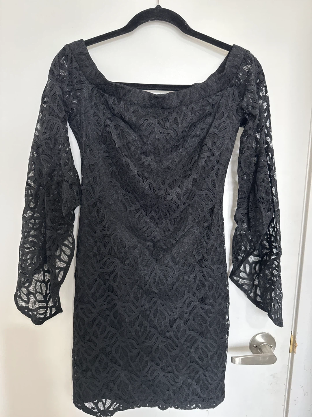 Selling a lovely Bebe black lace dress in size S/M It's in great condition and ready for a new home. Perfect for a night out or any special occasion. The lace detailing is beautiful and adds a touch of elegance