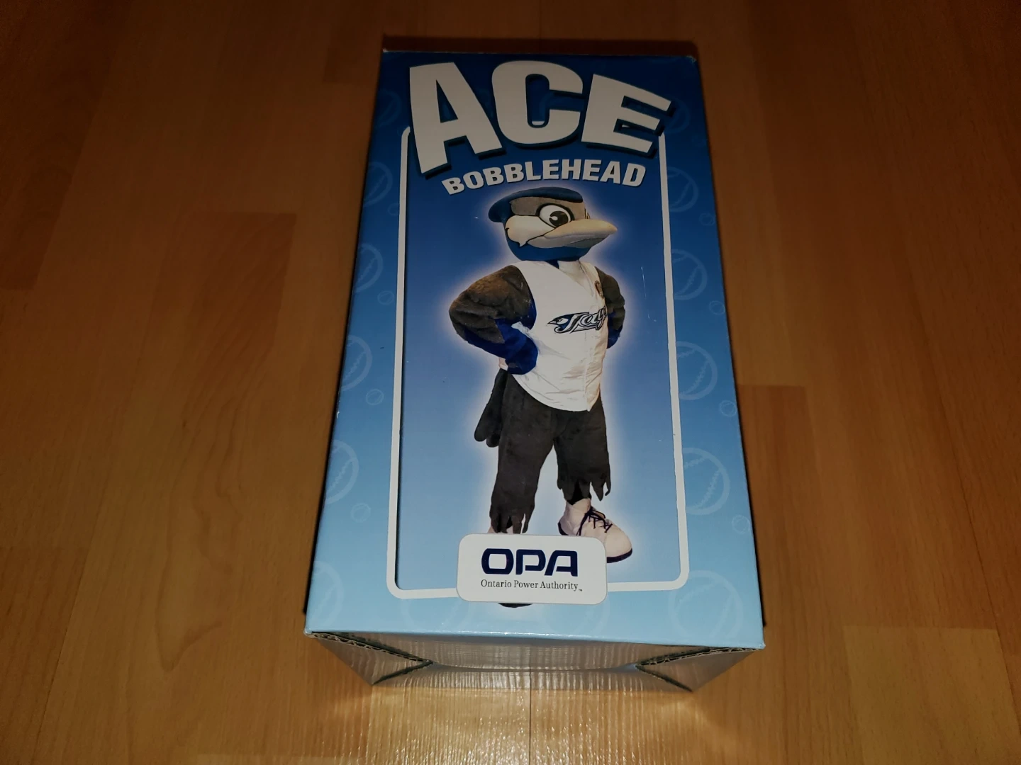 This is an "Ace" Toronto Blue Jays bobblehead that comes in its original box with protective foam packaging.