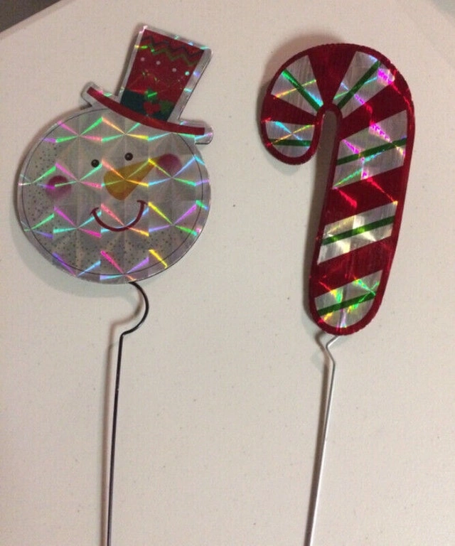 Selling a set of Christmas garden stakes, including a shiny snowman and a shiny candy cane. They have metal stakes with a corrugated cardboard-like appearance. I don't think I ever used them. They're great for decorating your lawn or planters for the holidays. Each stake is about 30" tall. Selling both for $5. Located near the Burlington/Oakville border. Cash or cashless payment accepted.