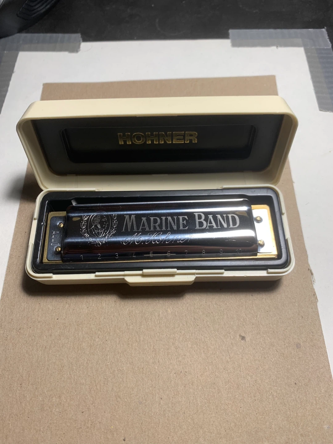 Selling a brand new Hohner Marine Band 1896 G Harmonica. It includes the original box and has never been played.