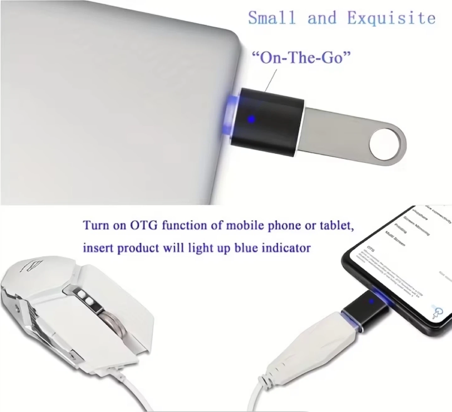 1pcs USB C to USB OTG Adapter, Type C Male to USB3.0 Female OTG Converter Connector with LED Light for Sync U Disk Data to Smartphone Laptop Tablet