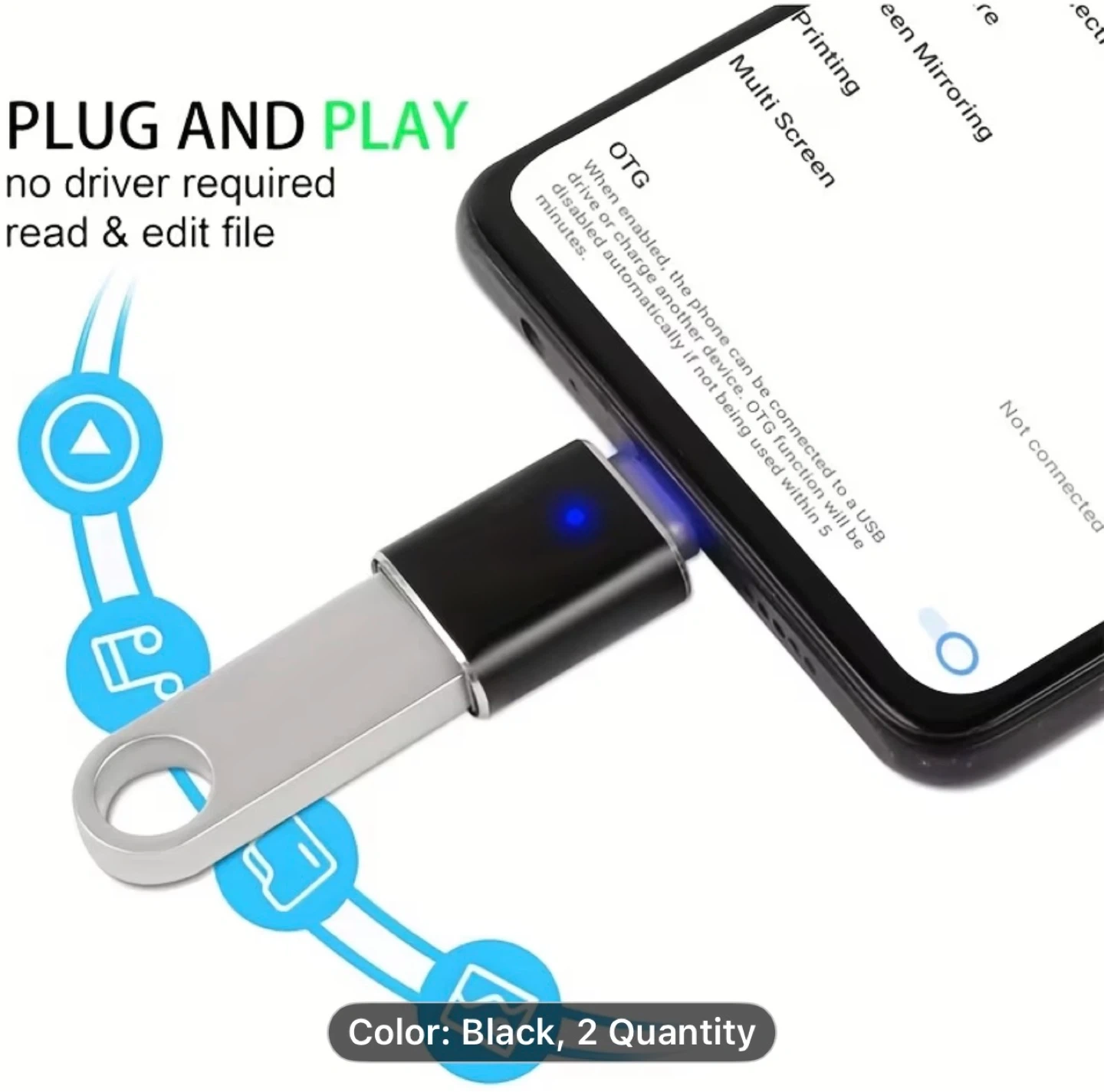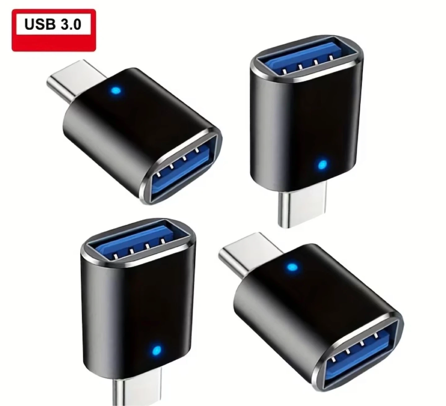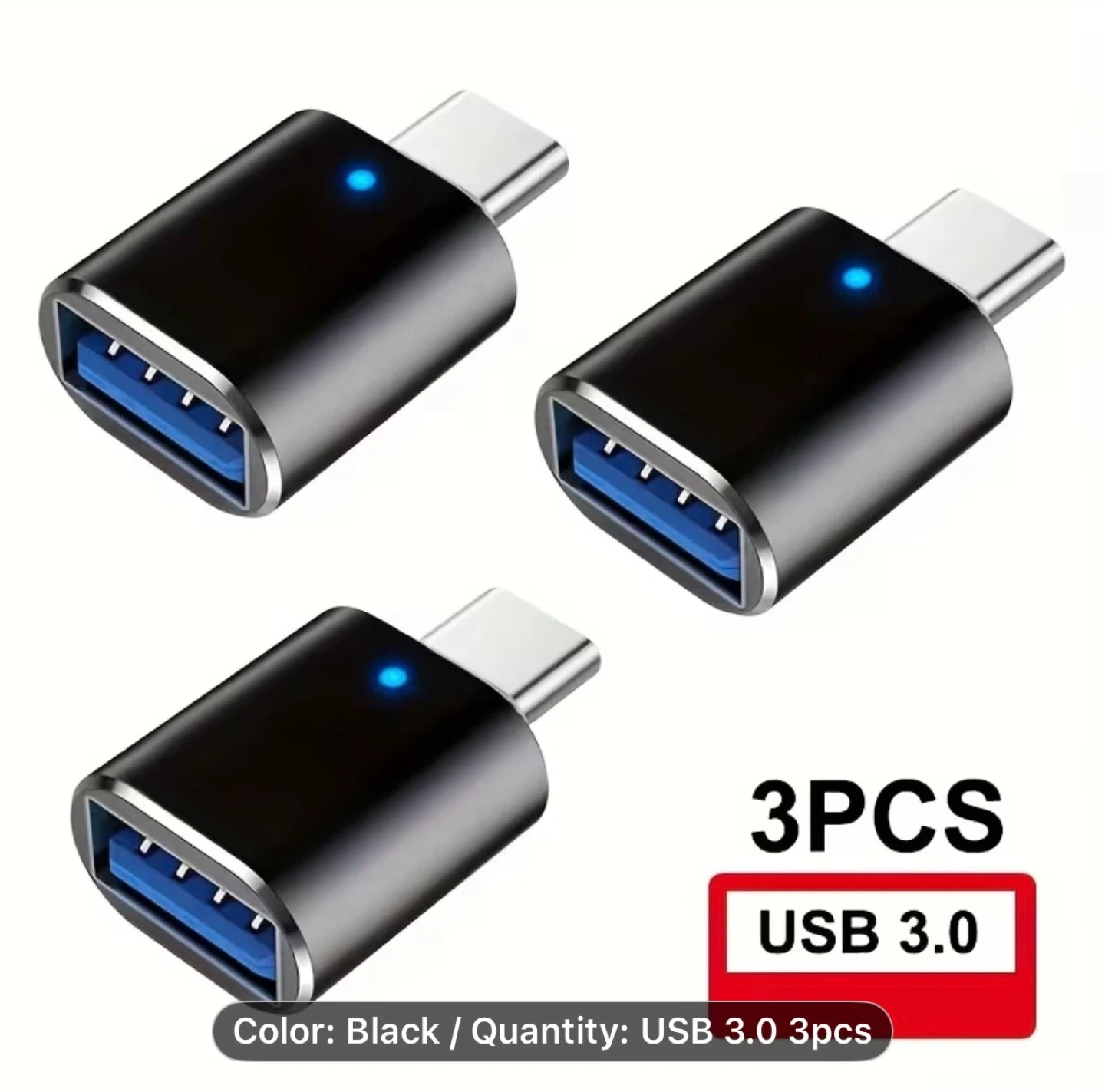 1pcs USB C to USB OTG Adapter, Type C Male to USB3.0 Female OTG Converter Connector with LED Light for Sync U Disk Data to Smartphone Laptop Tablet
