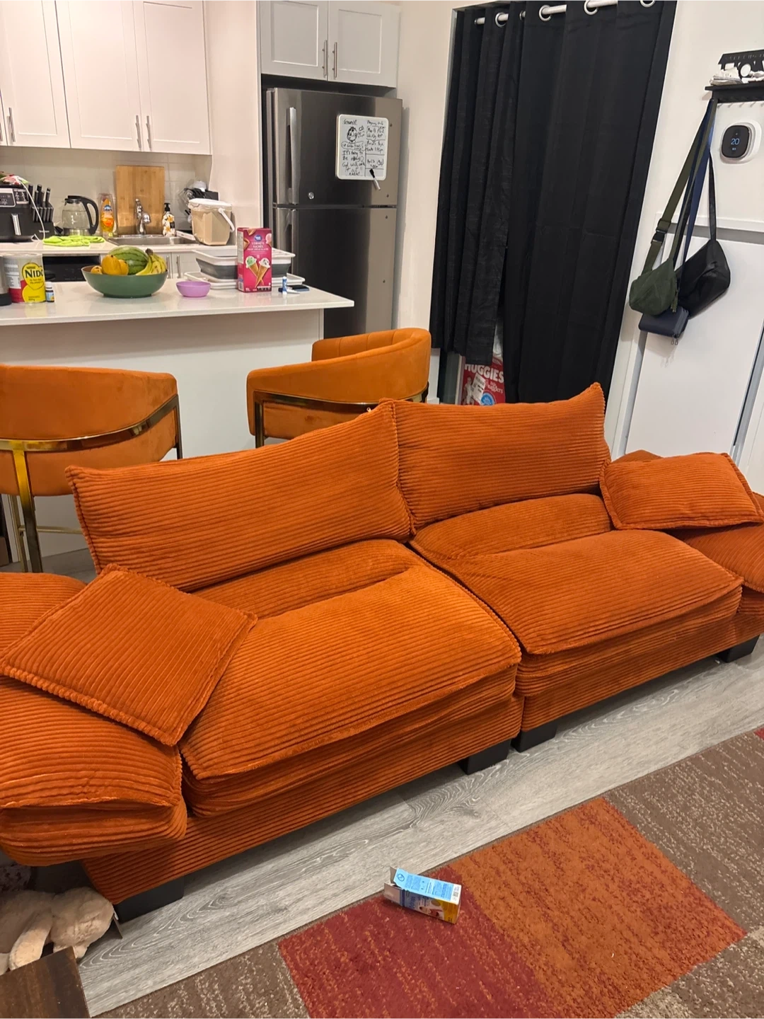 Buy & SellOrange Corduroy SofaOrange Corduroy Sofa$160Orange corduroy sofa. This couch has a corduroy fabric. It's a nice statement piece for any living room!ConditionLike newWHERE TO MEETBond Street EastView MapSELLERBrynWhitby Mall181 review1 chats·2 favorites·44 viewsSEND CHAT TO SELLERHi Bryn! I’m interested in your listing.Hi Bryn! I’m interested in your listing.Get the Karrot app to chatSign In to chat