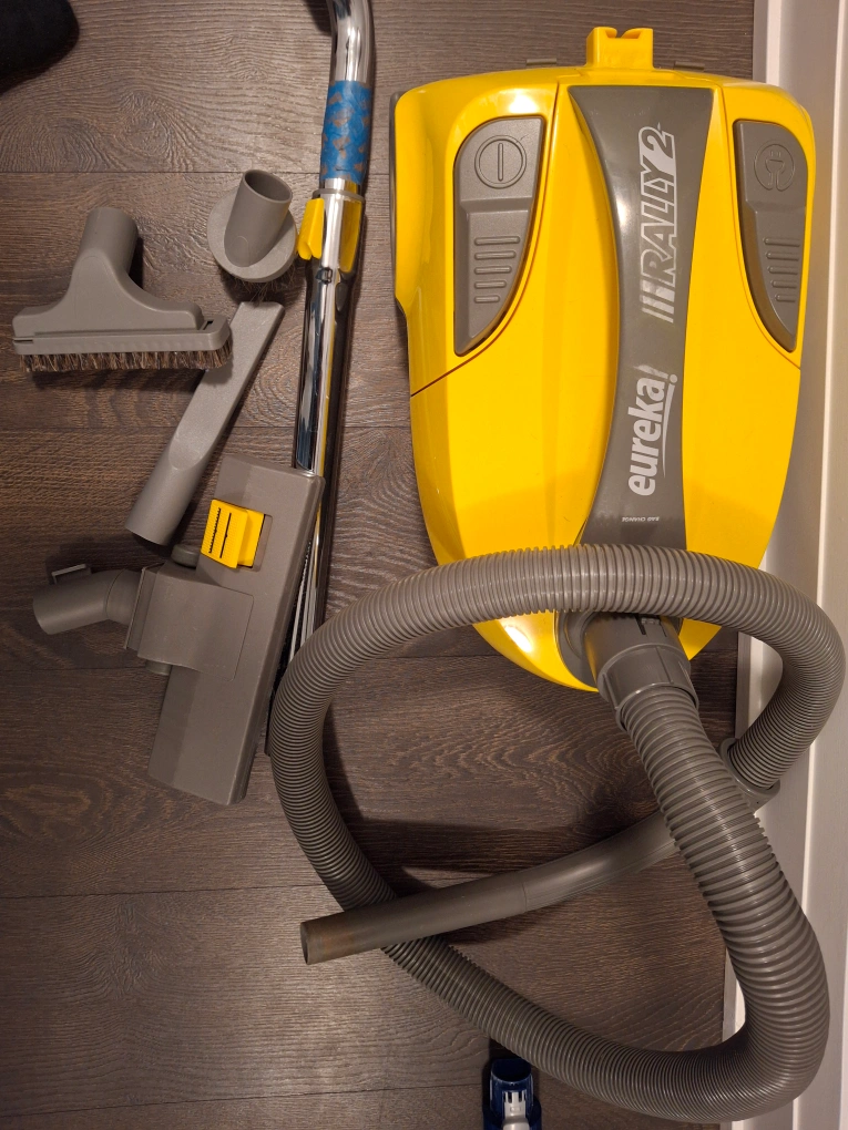 Eureka Rally 2 canister vacuum. Includes various attachments. Good used condition.