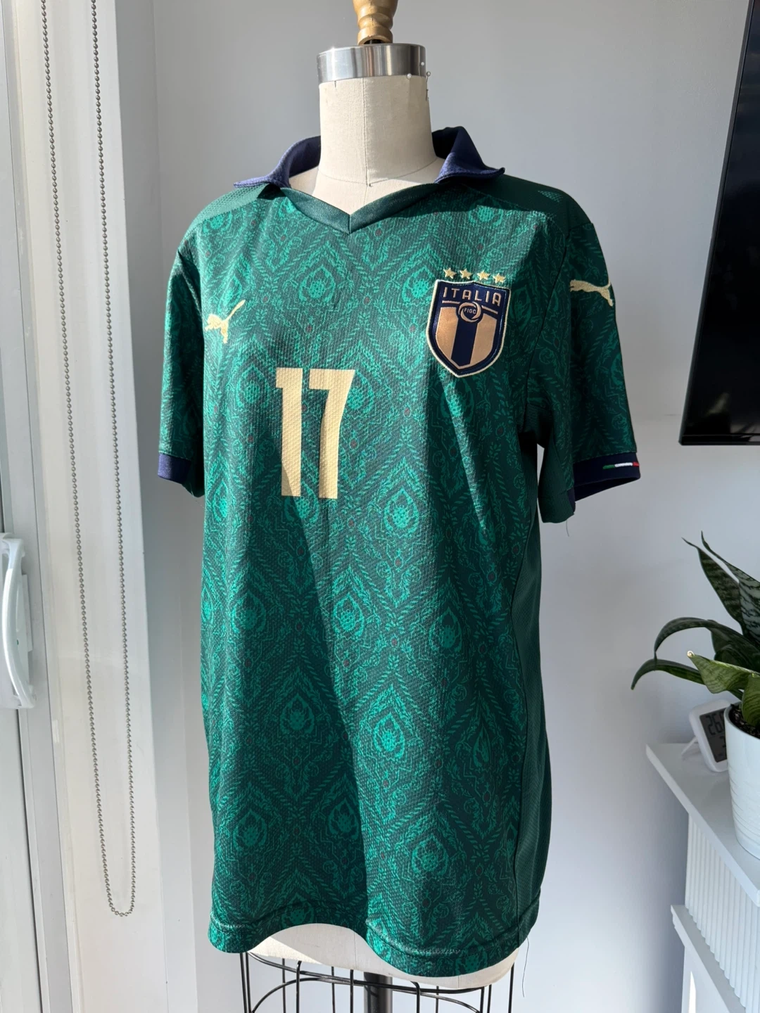 1000+Selling a Puma Italy soccer jersey in size medium. It's in great condition and features the number 17 and the name IMMOBILE on the back. Perfect for any soccer fan!