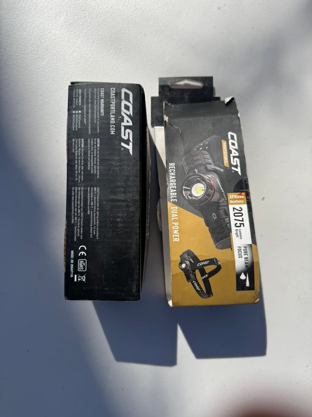 This is a Coast Professional rechargeable dual power headlamp. It offers pure beam focus with 2075 lumens. It comes with its original box and accessories.