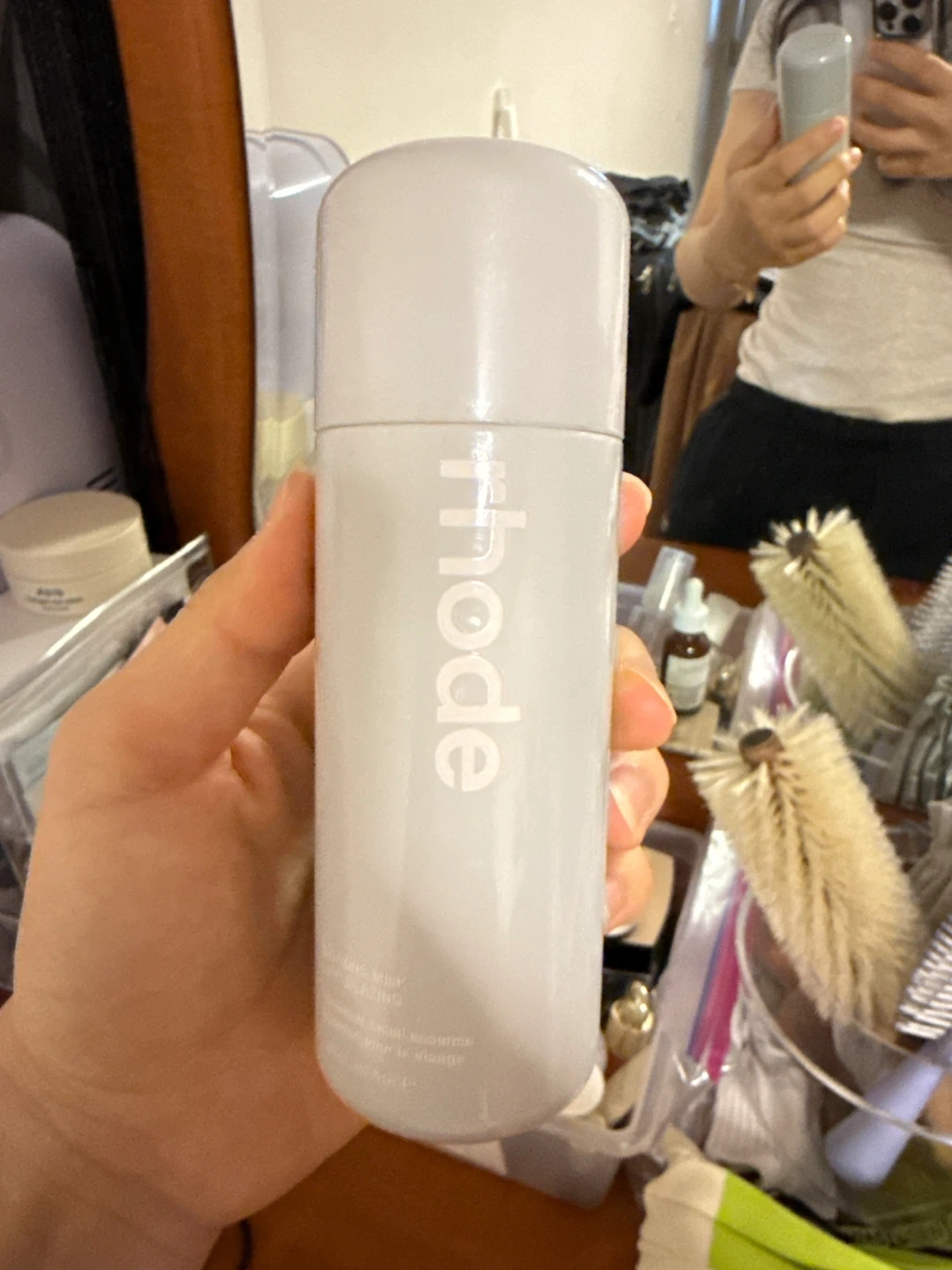 This is the Rhode Peptide Glazing Milk. It's a facial essence. The bottle is a light gray color and has a twist-off cap.