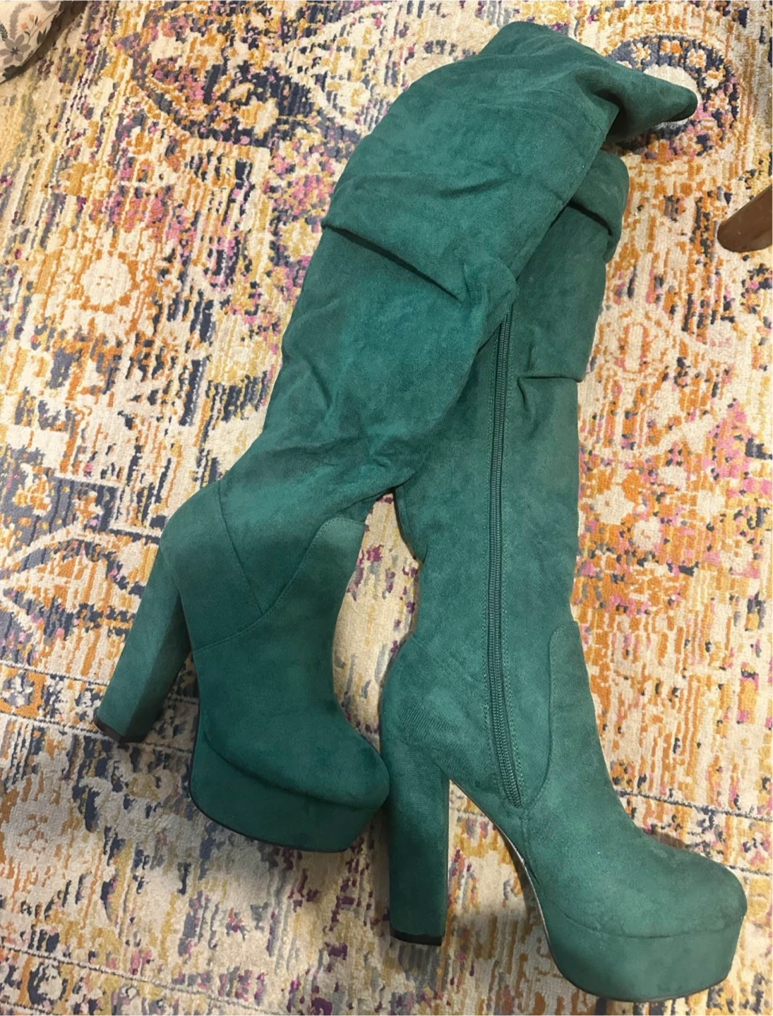 Brand New Women's Green Platform Round Toe Slouch Heel Boots