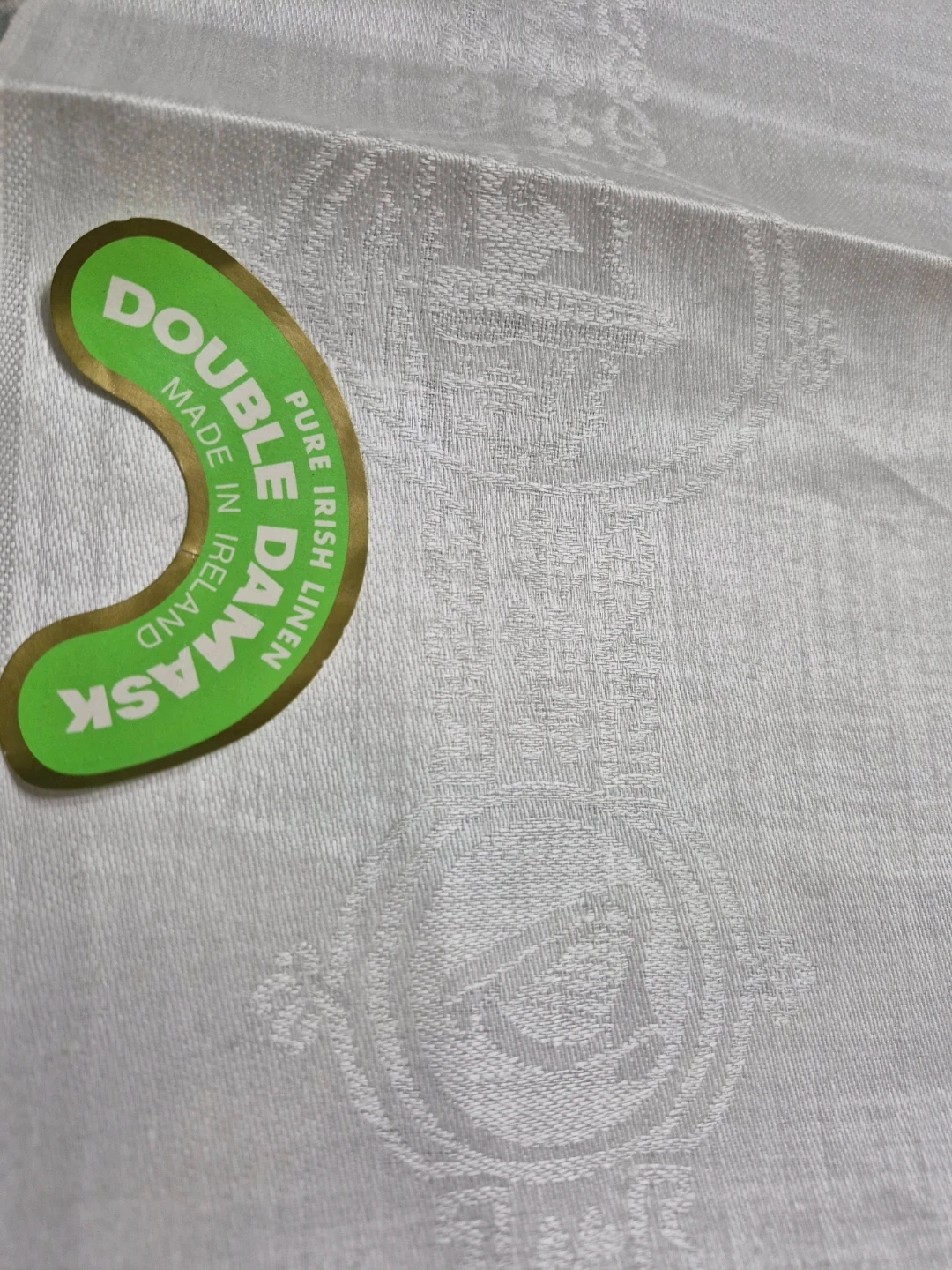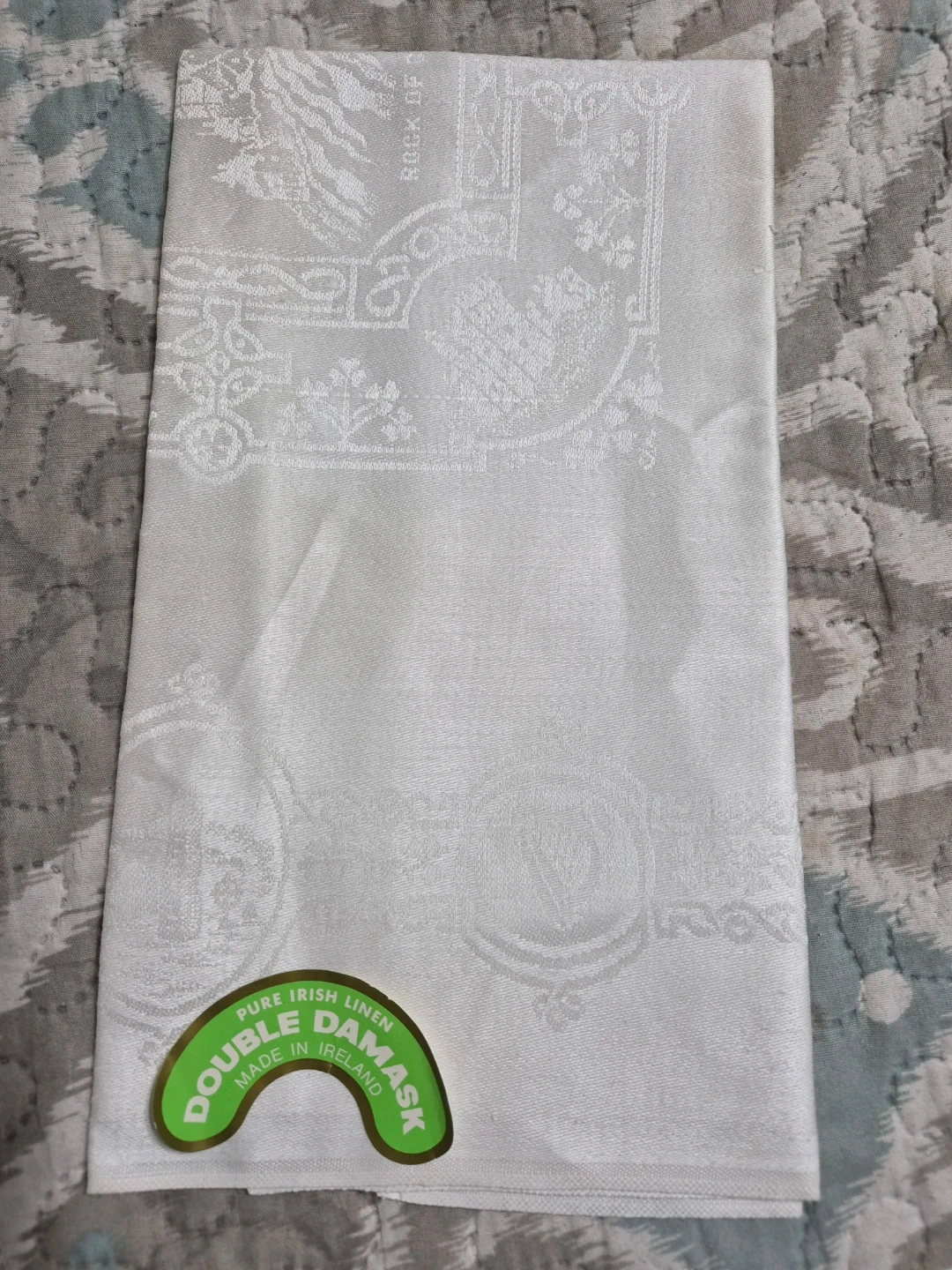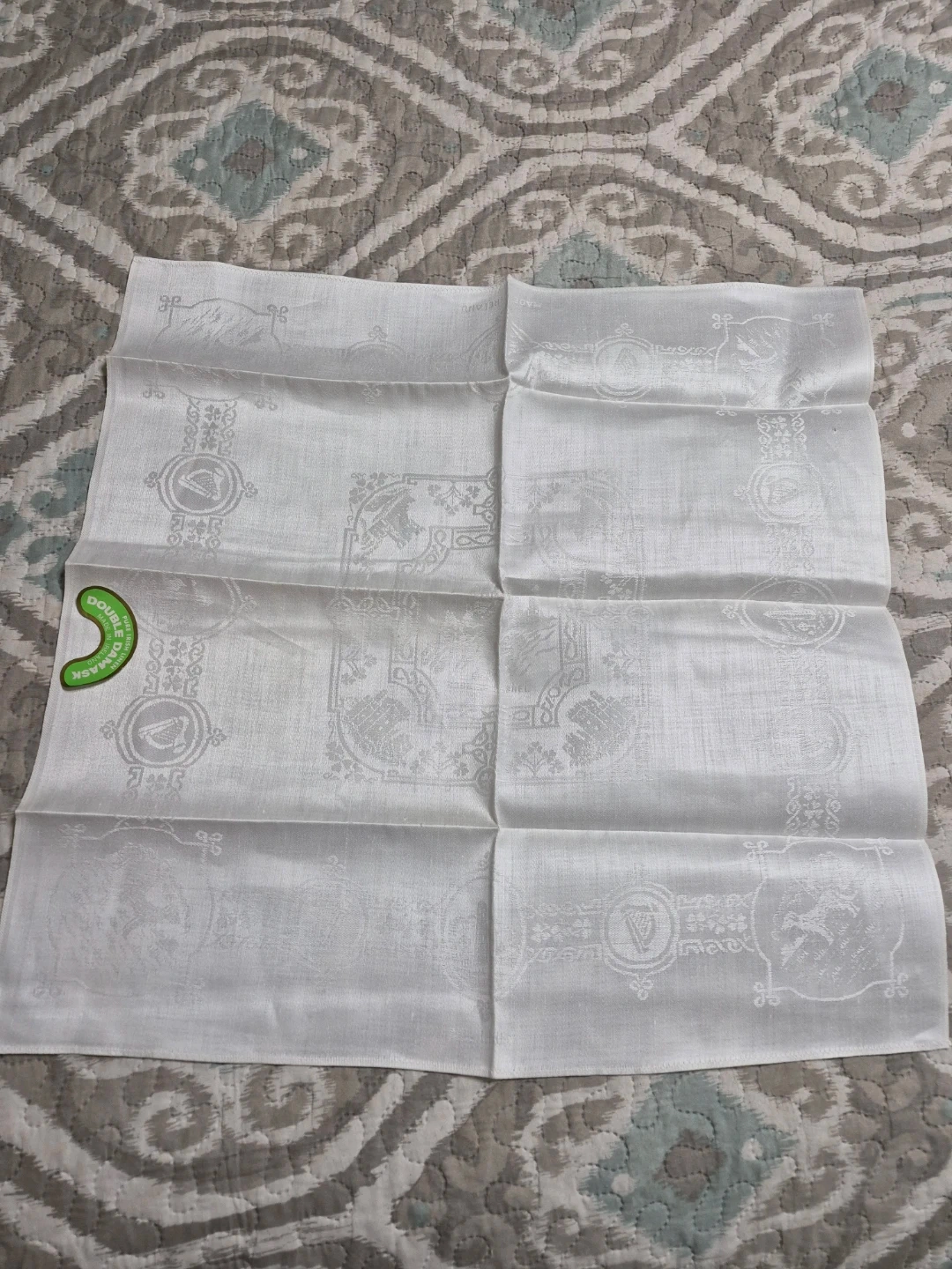 Vintage Pure Irish Linen Double Damask - 22" x 22" Table Decor Napkin White Brand New please see all pictures