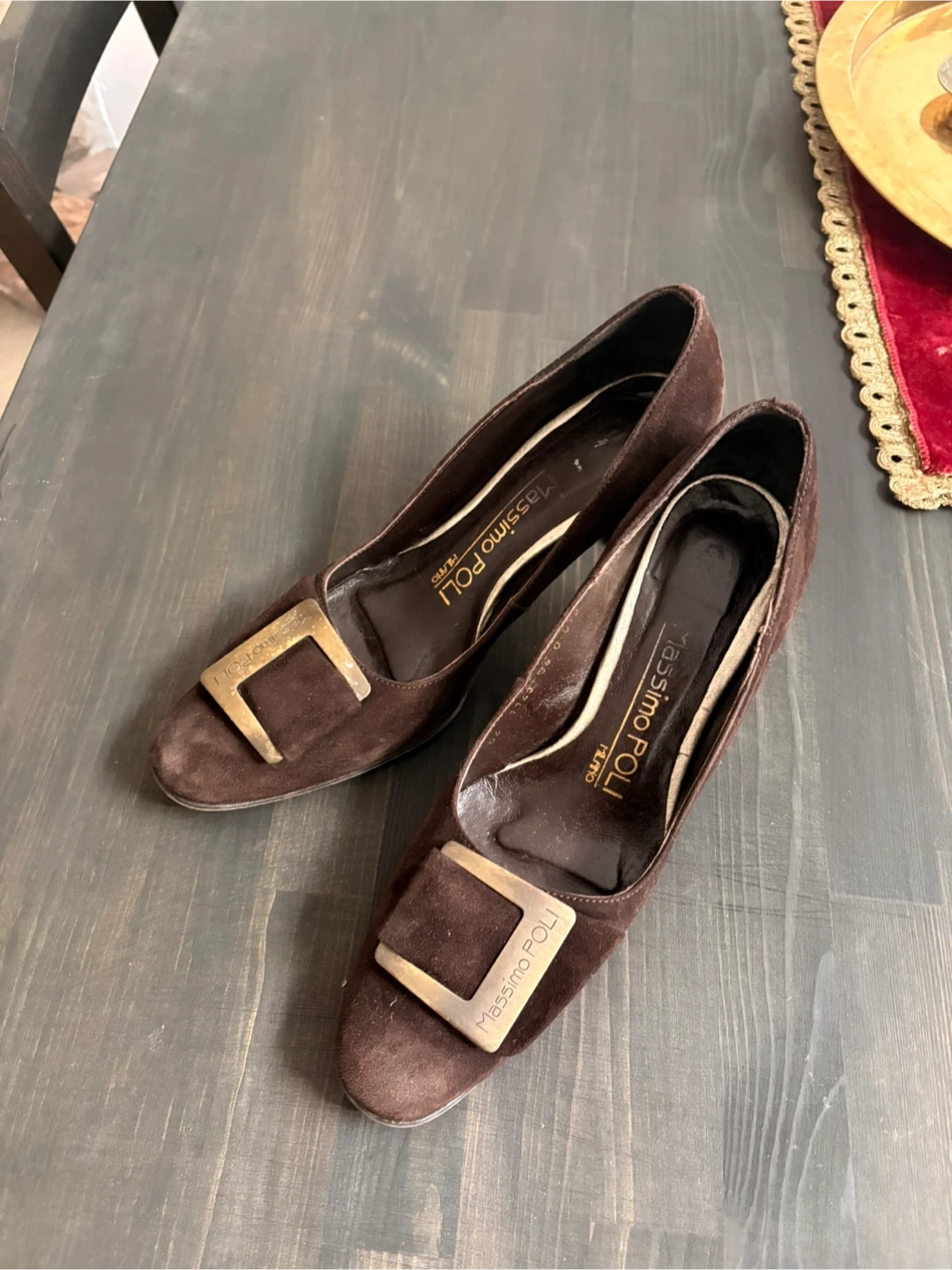 Buy & SellMassimo Poli Brown Suede Heels - Size 38Massimo Poli Brown Suede Heels - Size 38$40Classic Massimo Poli heels in rich brown suede. These pumps feature a stylish gold-tone buckle detail. Made in Italy. Shoe size is 38.BrandMassimo PoliWHERE TO MEETCheck LocationView MapSELLERverifiedNeseBay Ridges831 review0 chats·0 favorites·12 viewsSEND CHAT TO SELLERHi Nese! I’m interested in your listing.Hi Nese! I’m interested in your listing.Get the Karrot app to chatSign In to chat
