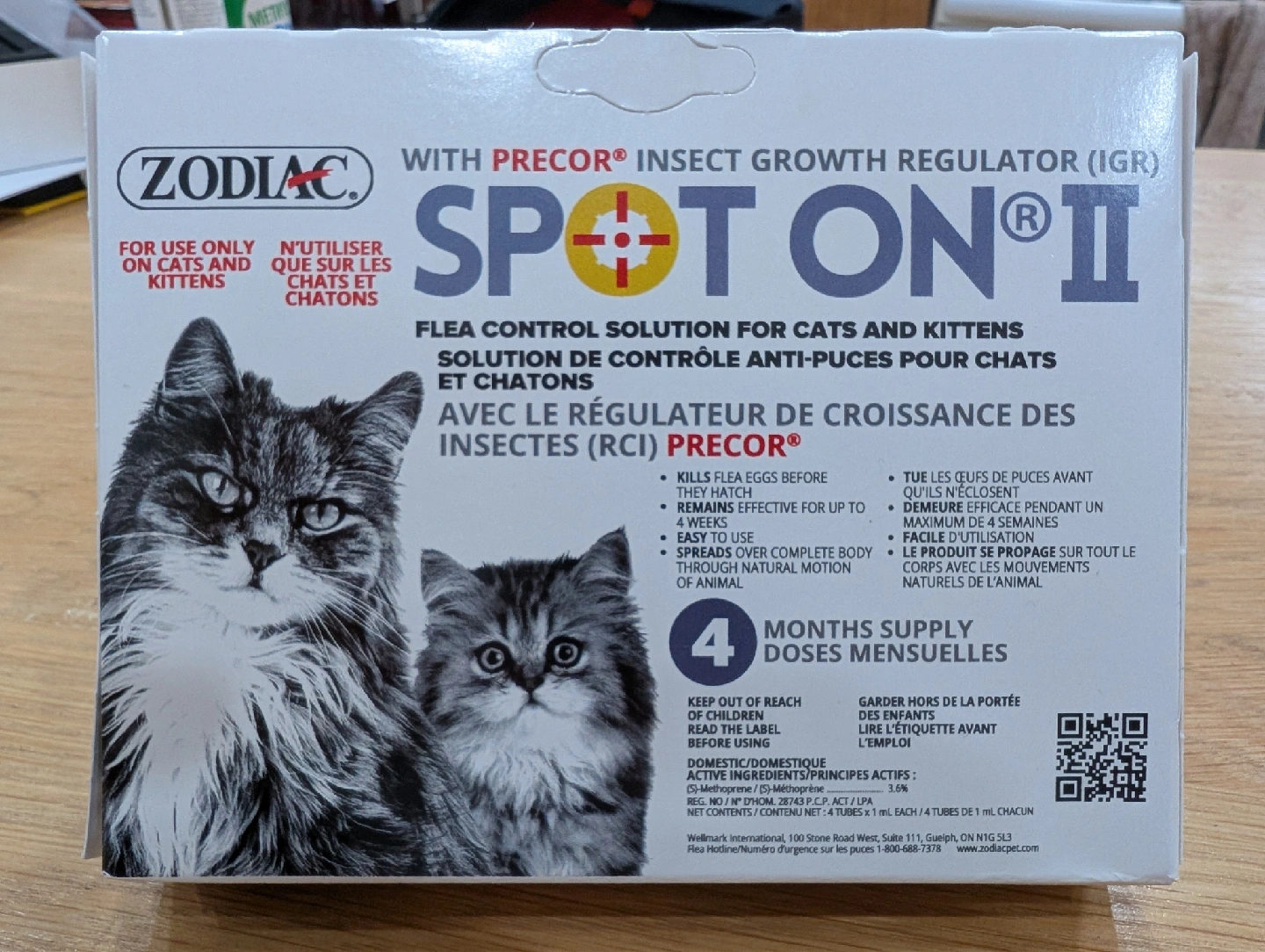 Zodiac Spot On II Flea Control solution for cats and kittens. It kills flea eggs before they hatch and remains effective for up to 4 weeks. Easy to use with complete body through natural motion of animal. Provides 4 months supply.