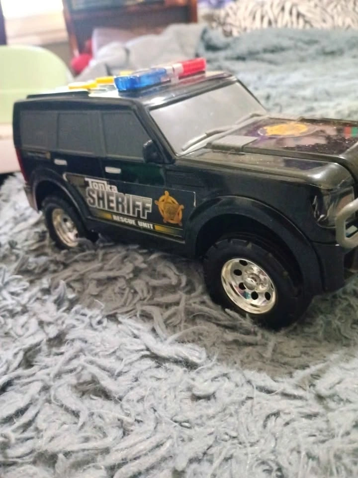 It needs new batteries but all of the sound should work. There is some wear to the paint on the vehicle but all of the stickers are intact and there is no cracked parts. Eastend pick up, cross posted.