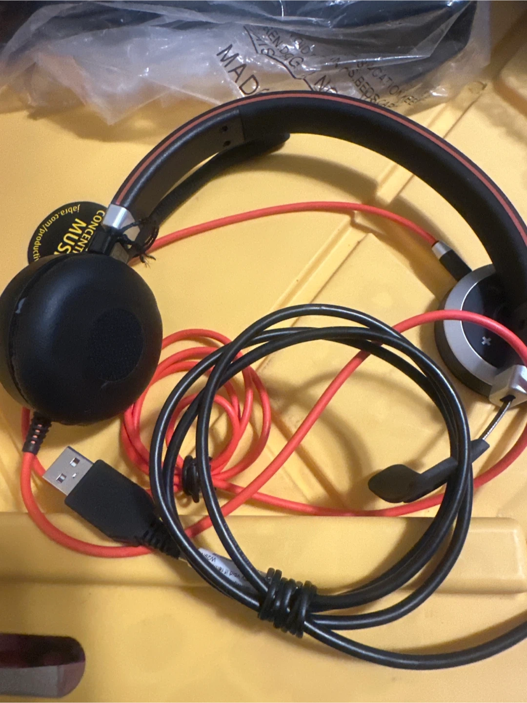 This is a Jabra Evolve 40 MS Stereo headset. It's designed for professional use and works with Microsoft Teams. The headset includes a USB controller and a microphone boom. It features a comfortable over-ear design for extended wear. Great for calls and collaboration!