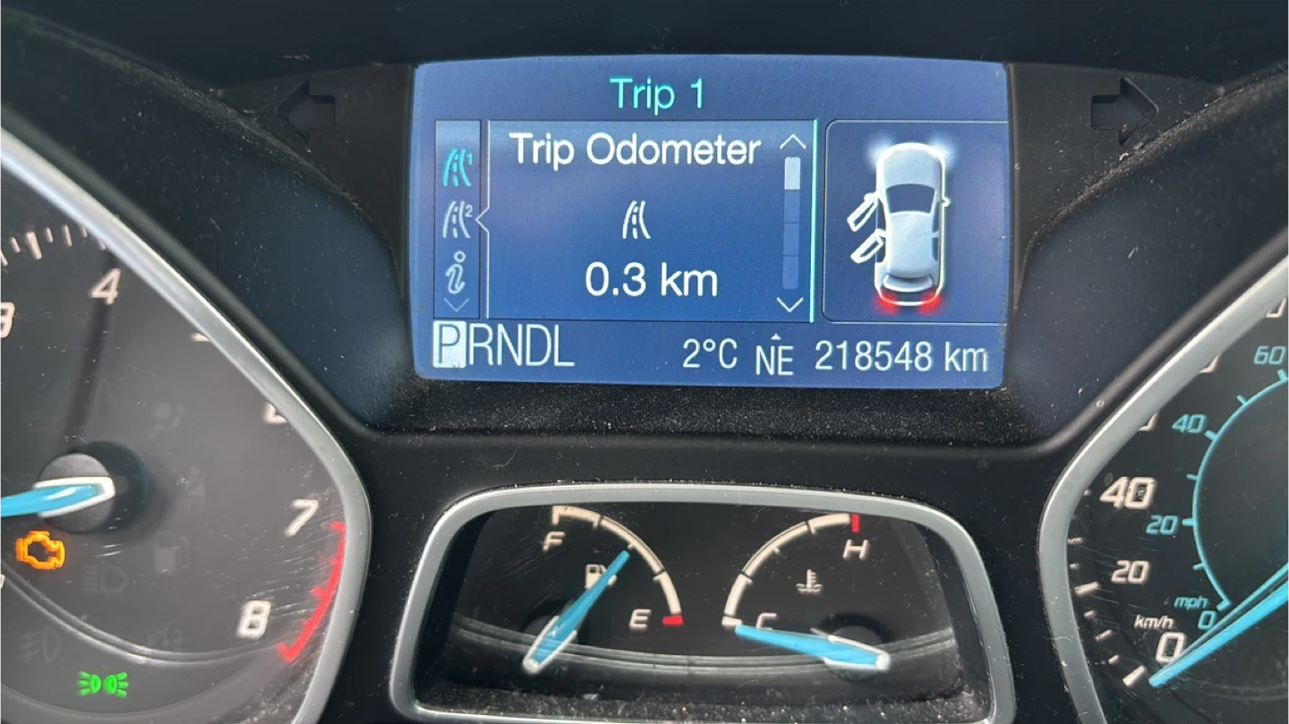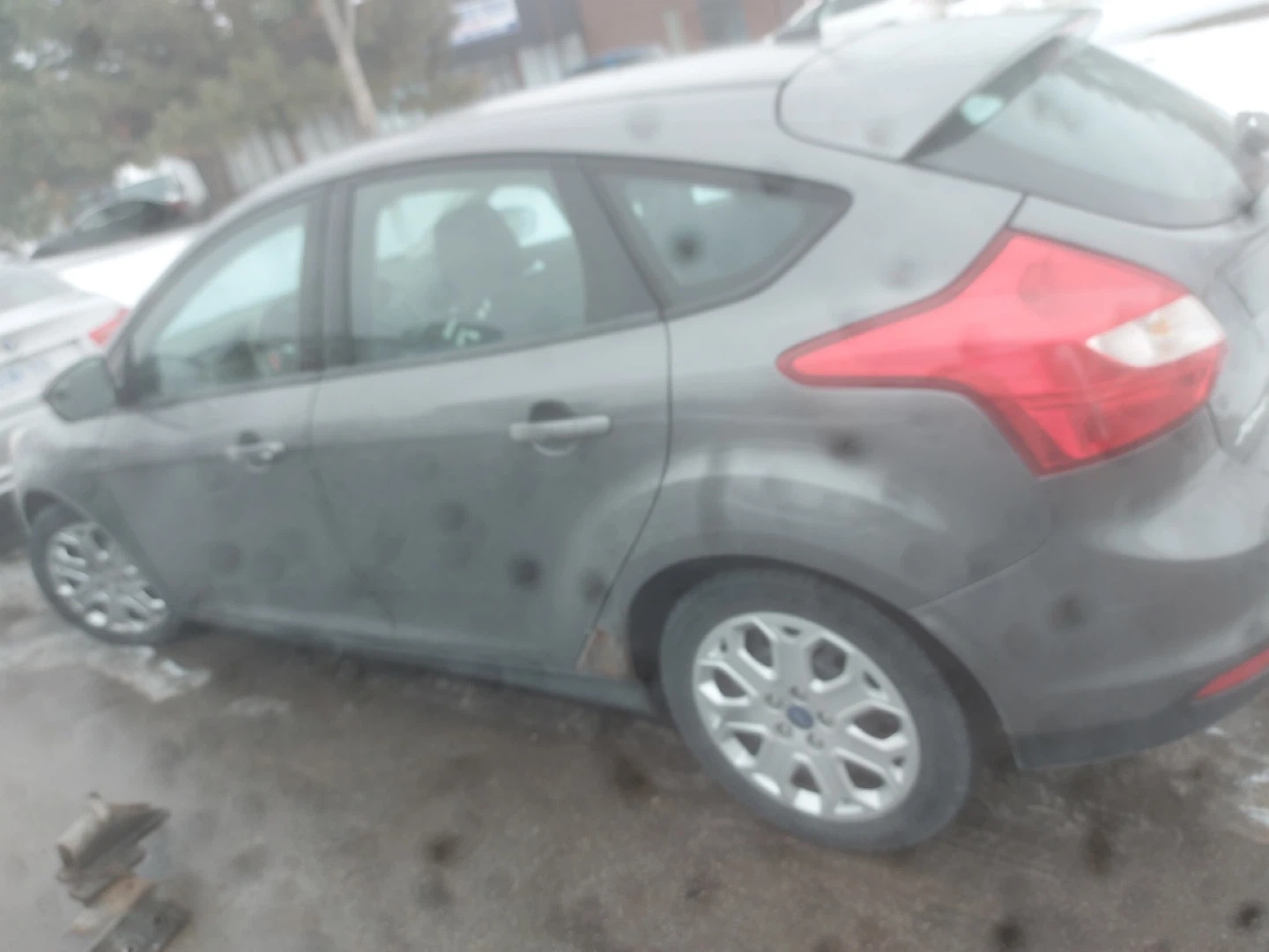 Grey Ford Focus hatchback. It's a 2012 model with 218,548 km. The car is grey and has a hatchback body style. This car would be useful for someone looking for an affordable used vehicle.