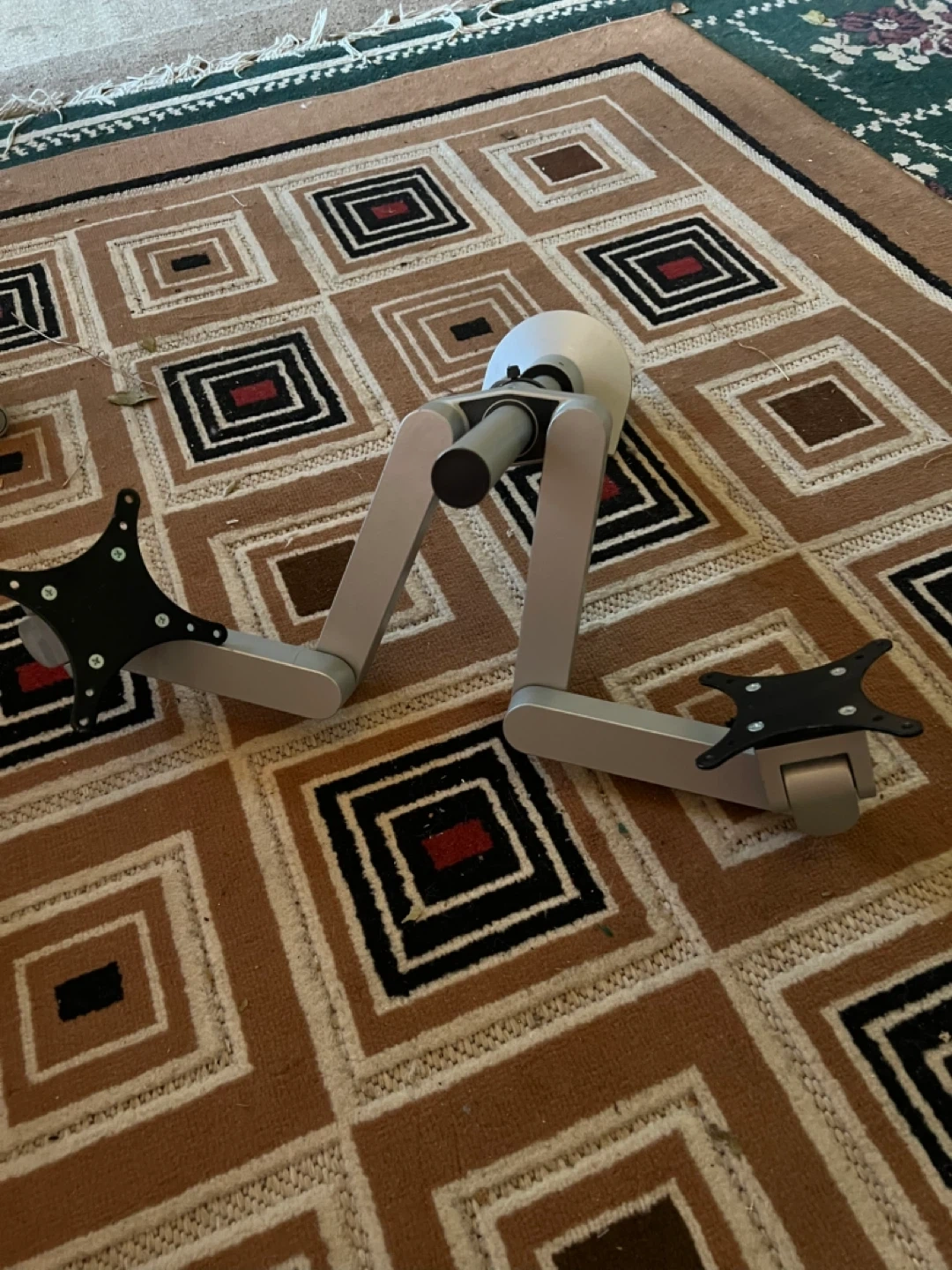 Selling a desk mount for two monitors! It's silver and looks to be in great condition. Perfect for setting up a dual monitor workstation