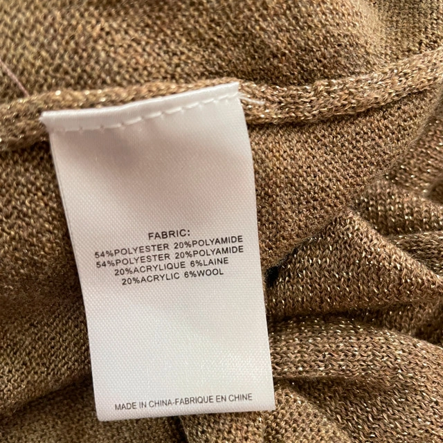 Selling a Stunning Molly Bracken with Metallic Gold Open Back knit sweater-Medium. Really soft cozy sweater. Round neckline. Crossed back and split in the middle. Ribbed neckline, cuff and bottom finish. Gently used. 54%polyester 20%polyamide 20%acrylic 6%wool Measurements lying flat: Pit to pit: 22" Length: 21.5" Asking $30 Available for pick up in the Broadview/Danforth area. Contact-free porch pick up. Check out my other great stuff!