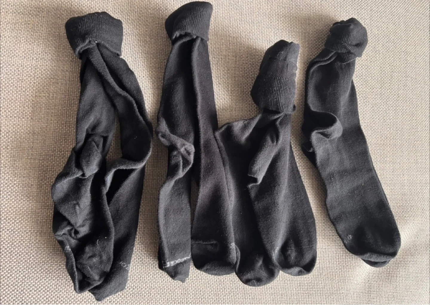 Four pairs of men’s black socks. Material is 100% Cotton. Mid-calf length. Comfortable for everyday wear.