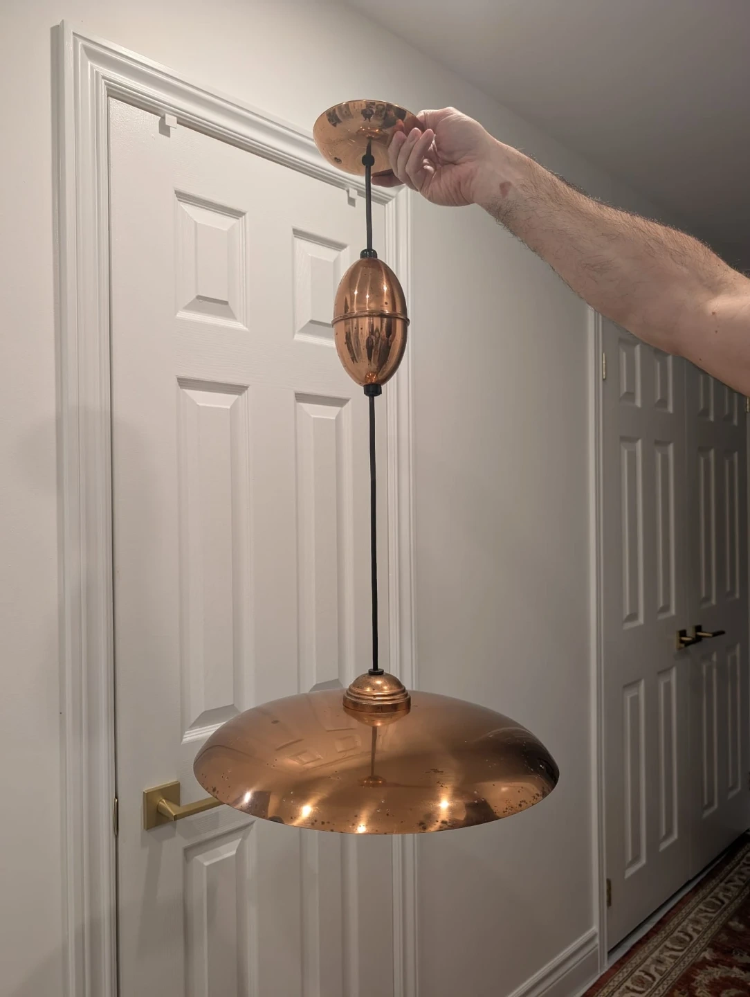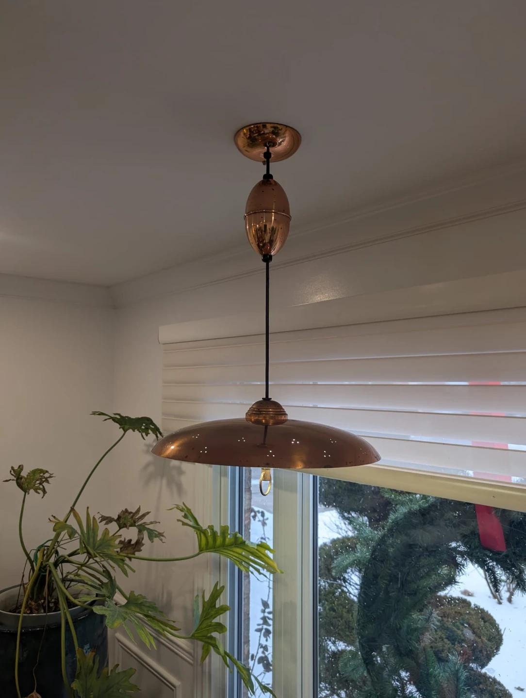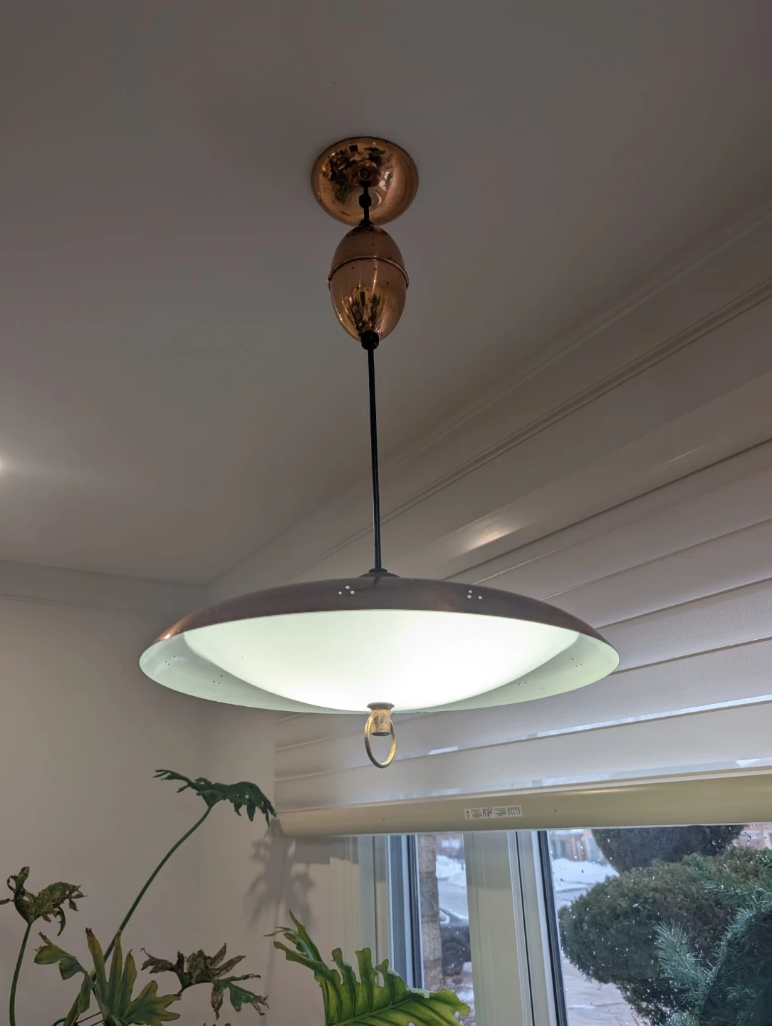 Vintage Copper retractable saucer MCM Ceiling Light