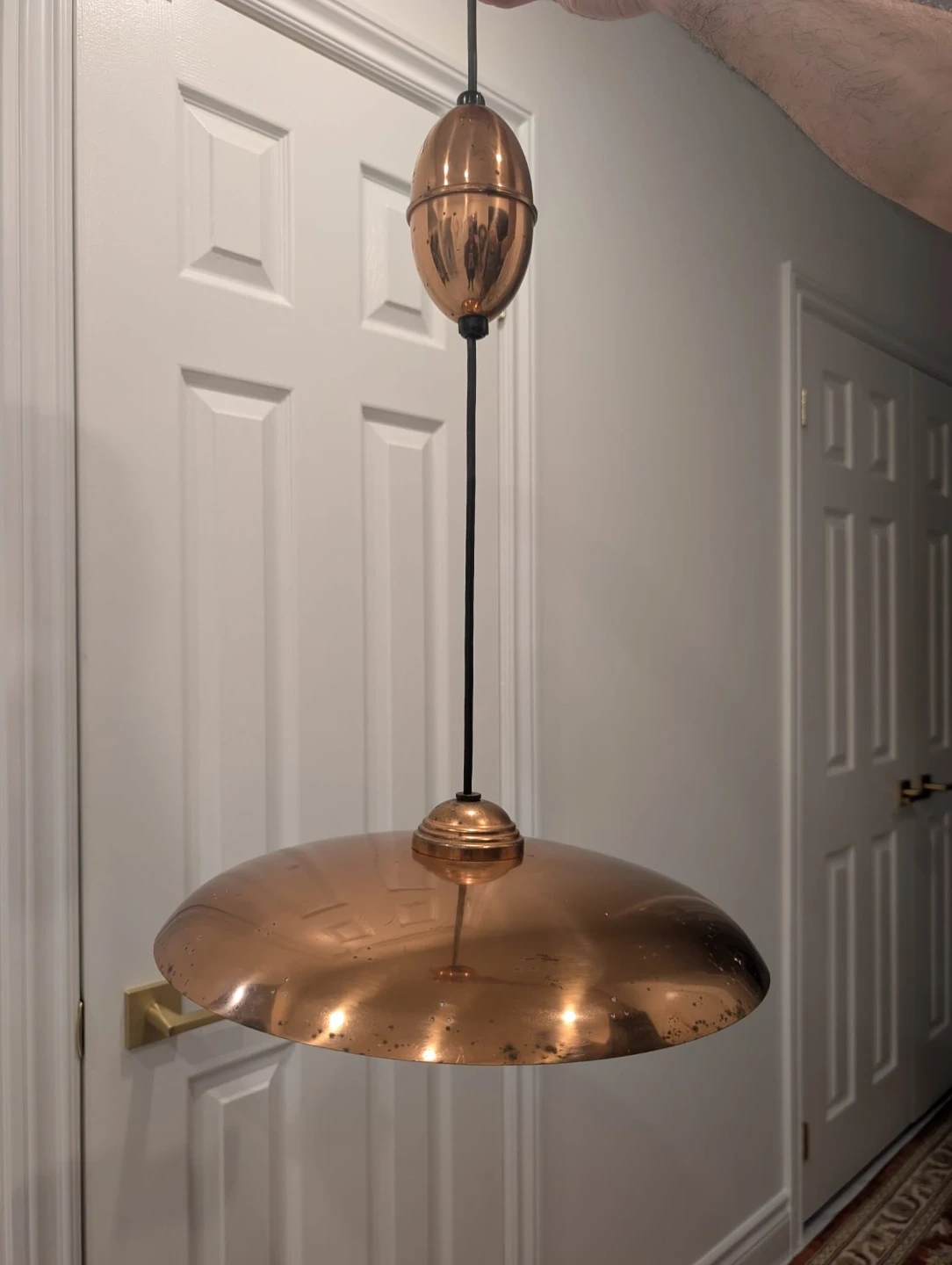 Vintage Copper retractable saucer MCM Ceiling Light