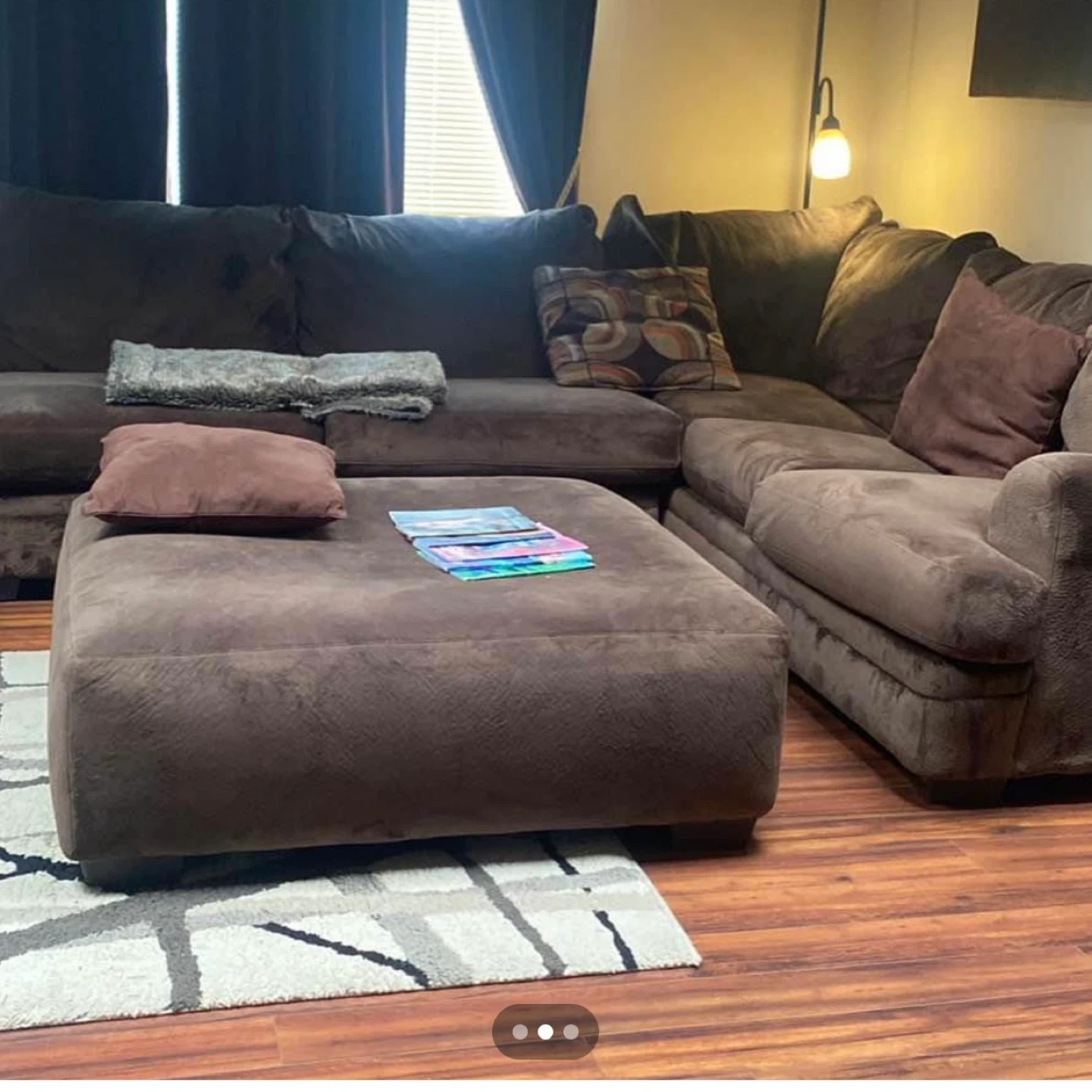 Spacious brown sectional couch with a matching oversized ottoman. Upholstered in a soft, durable fabric. Plenty of seating for family and guests! Can deliver Today early to afternoon only if interested .3/31/26