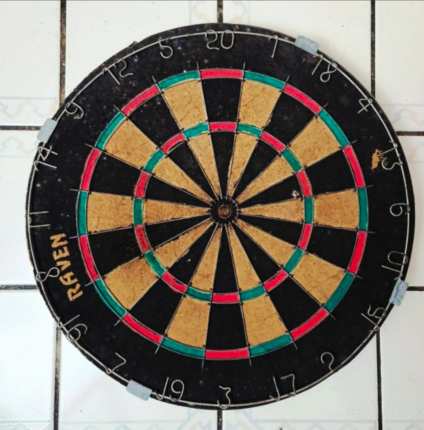 Begin your darting game right with the Raven Sisal Dartboard! This dartboard is constructed from compressed sisal fibers, the latest innovation in steel tip darting. Constructing the board this way gives new life to your dartboard, as the special technique allows the sisal fibers to self-heal, as they remember their original shape. These dartboard will last years longer than their old school wood or paper counterpoints. The bristle dartboard features a 100% staple-free bullseye. This greatly reduces your chance of a bounce-out occurring while you shoot for a bullseye, increasing your scores. Other dartboards secure the spider with staples, increasing bounce-outs and frustration. The Raven also features galvanized triangular spider wire. This gives the spider great durability and strength to last the life of the board. Thanks for looking.