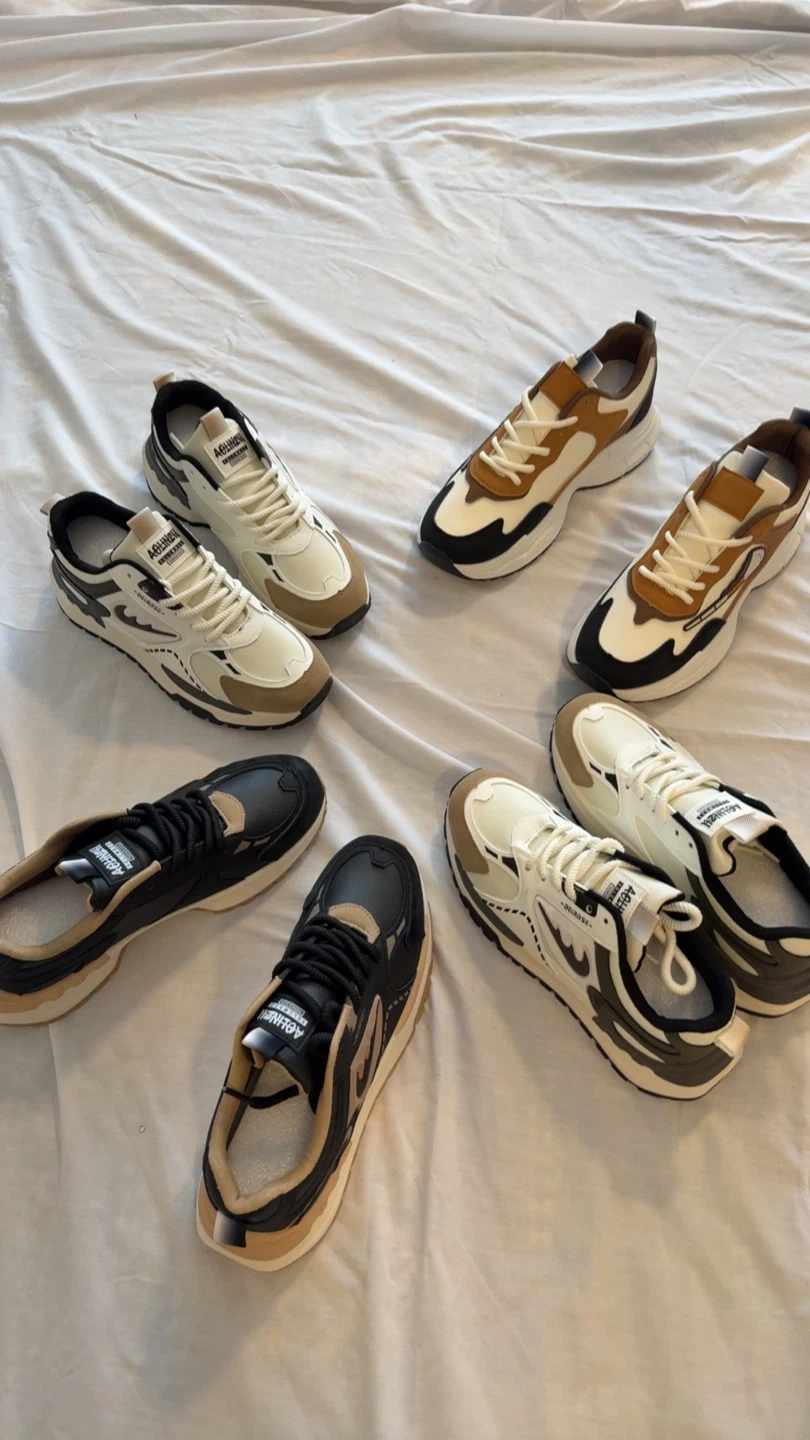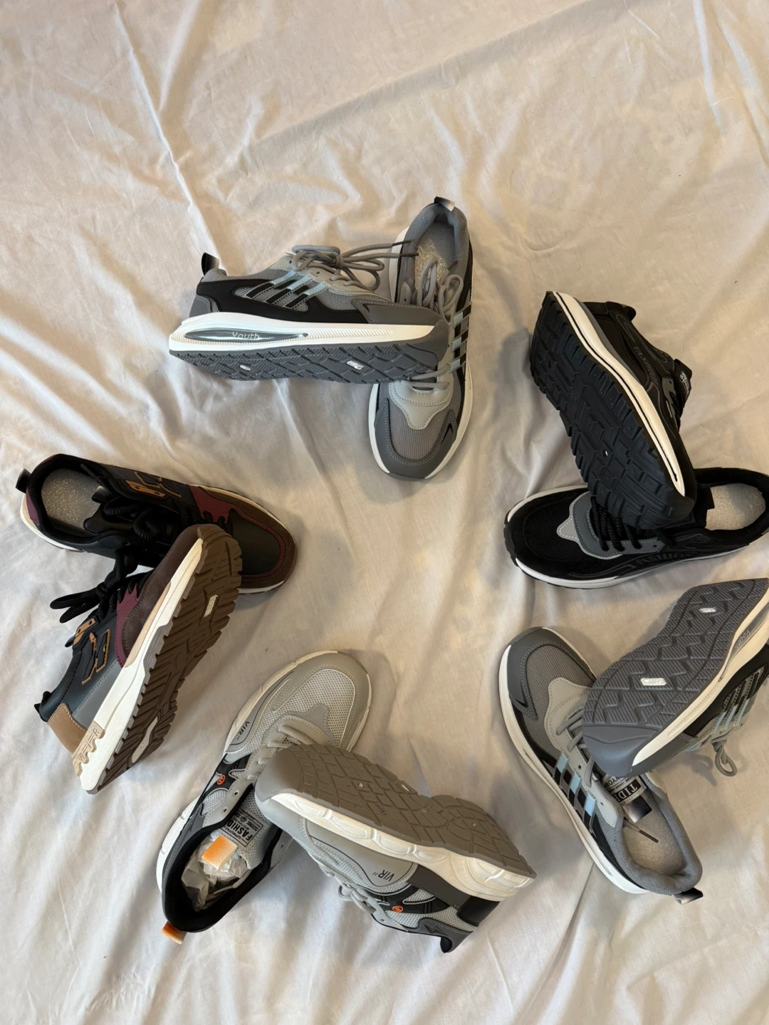 A collection of stylish men's fashion sneakers in various colours and designs. Features include durable rubber soles and comfortable uppers. Great for casual wear!