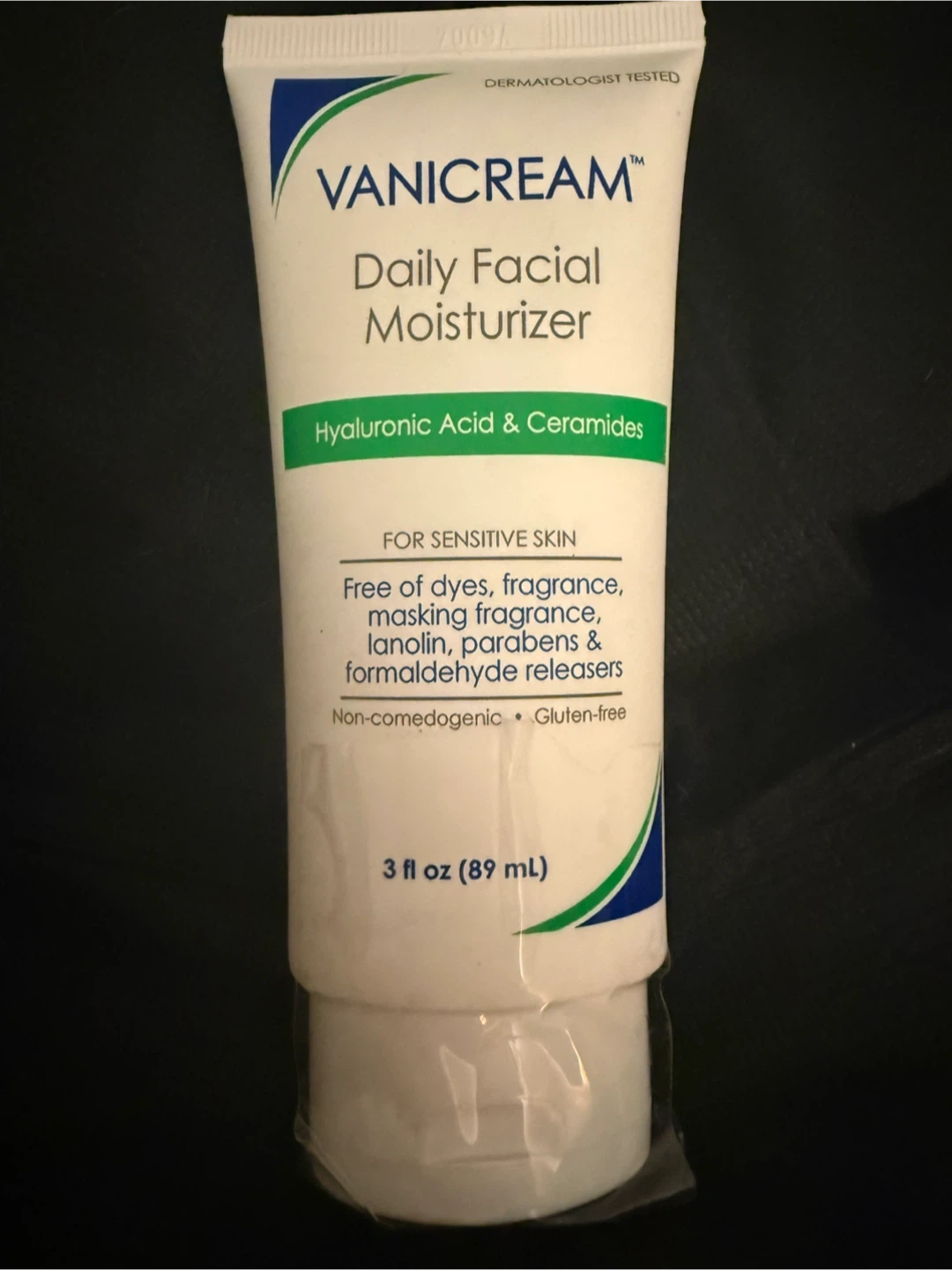 Selling a tube of Vanicream Daily Facial Moisturizer! This is a gentle moisturizer with hyaluronic acid and ceramides, perfect for sensitive skin. It's free of dyes, fragrance, masking fragrance, lanolin, parabens, and formaldehyde releasers. Also, it's non-comedogenic and gluten-free