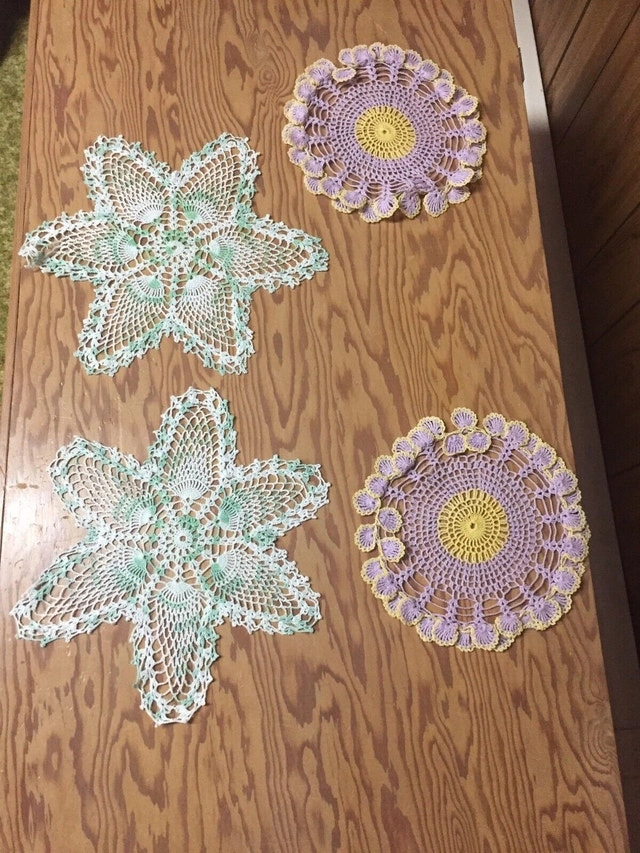 Variety of doilies and chair / couch arm doilies. Many styles, sizes and colours to choose from.