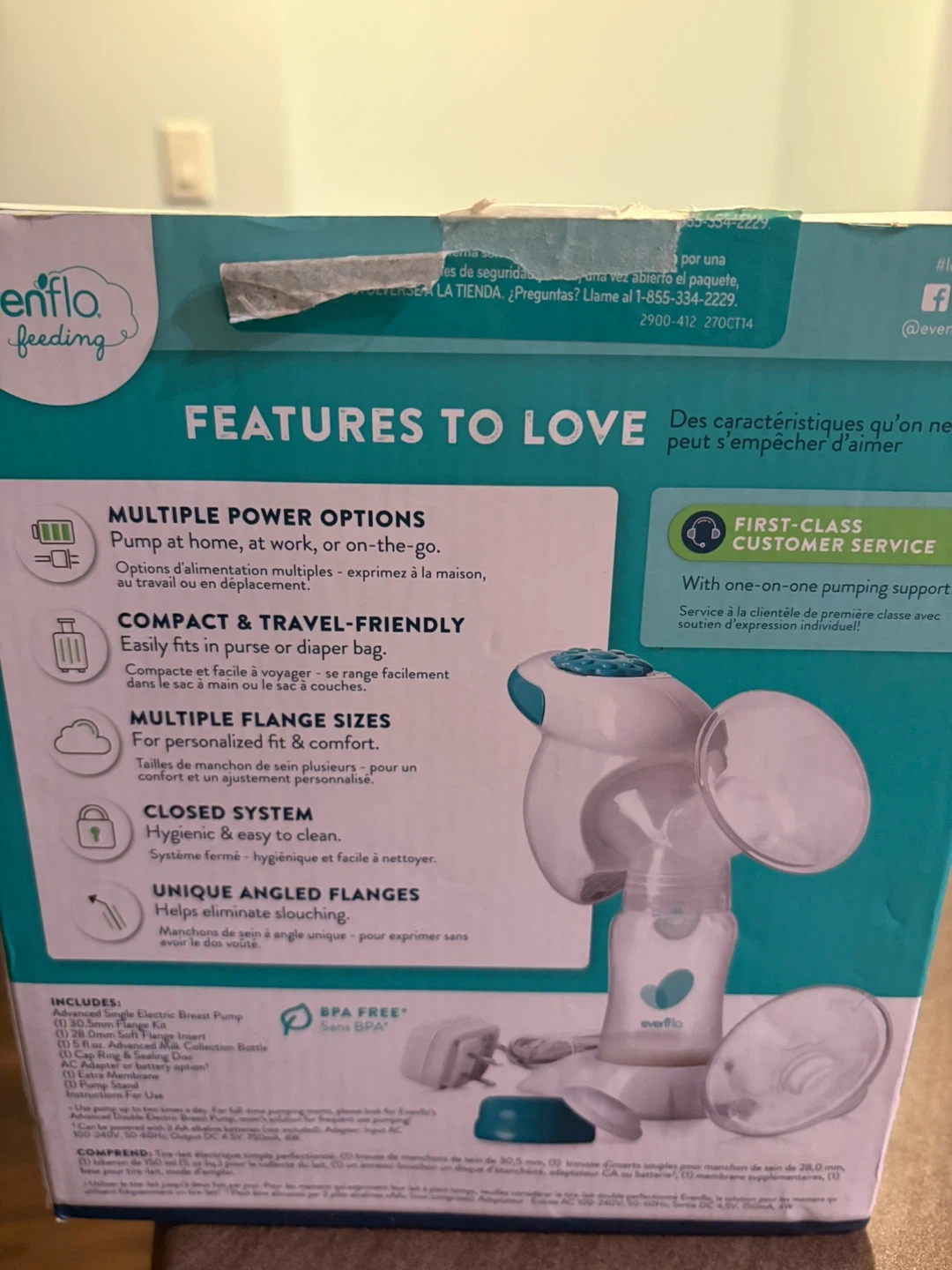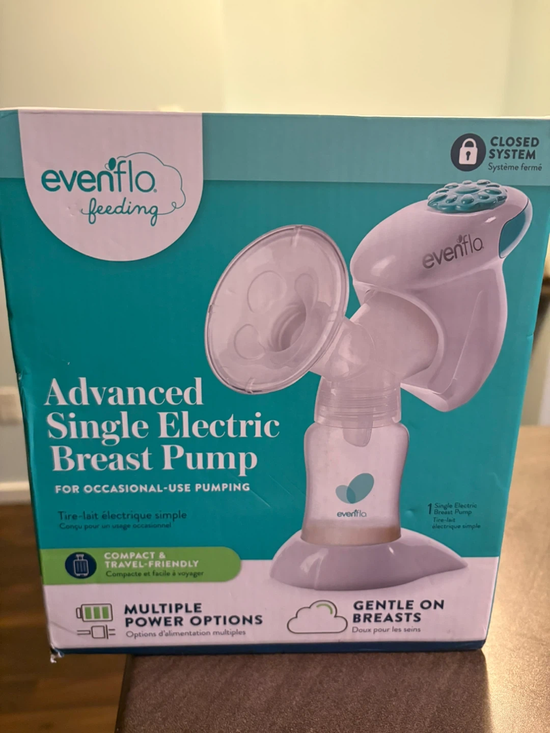 86Selling an Evenflo Advanced Single Electric Breast Pump! It's designed for occasional use and is compact and travel-friendly, easily fitting in a purse or diaper bag. It has multiple power options, so you can pump at home, at work, or on the go. The closed system is hygienic and easy to clean, and the unique angled flanges help eliminate slouching. Comes with various accessories for personalized comfort and adjustment