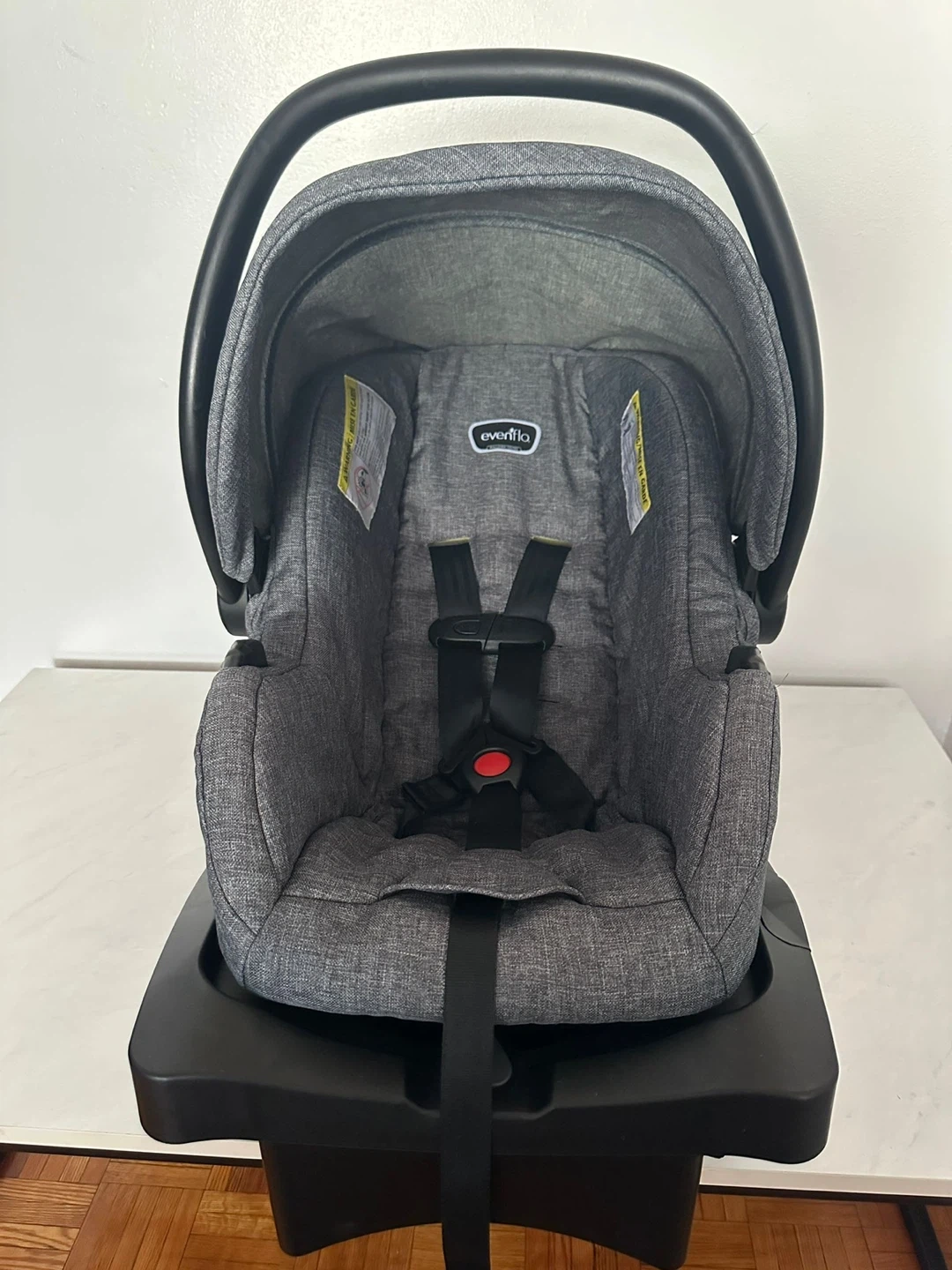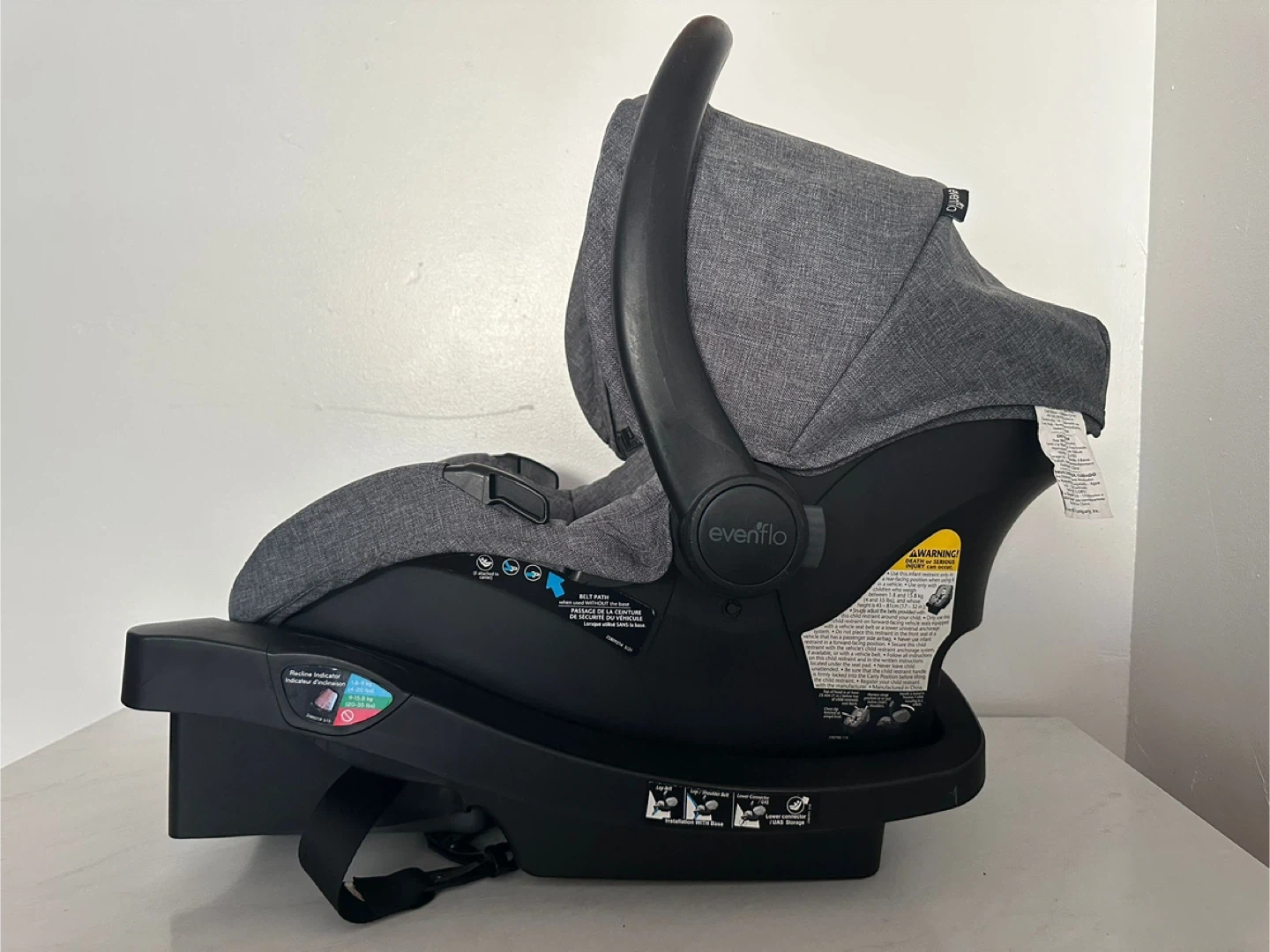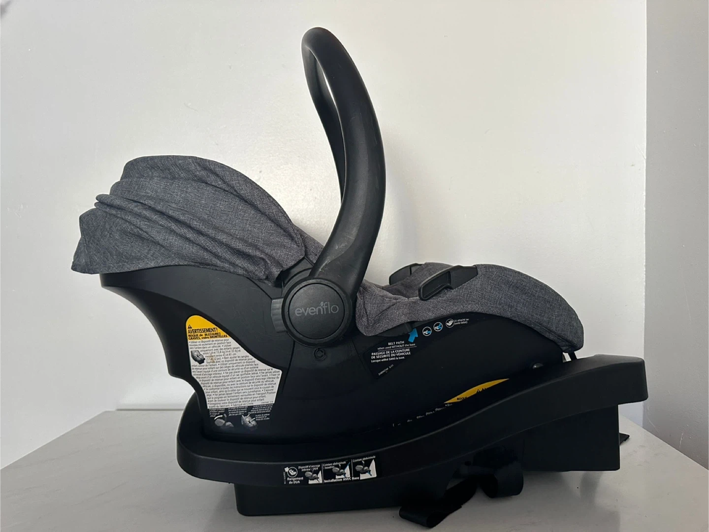 10I'm selling an Evenflo infant car seat in great condition! It's a safe and comfortable option for your little one. The car seat is grey and comes with a base. Perfect for newborns and infants!