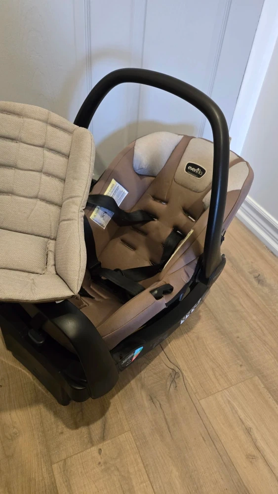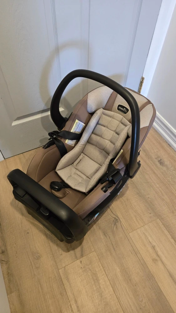Selling an Evenflo infant car seat. The model number is 56012477C. It was manufactured in June 2023. Expires on 2029 June 19 Selling it with 2 bases. So convenient to have 1 in your car, and spouses car (or grandparents even)